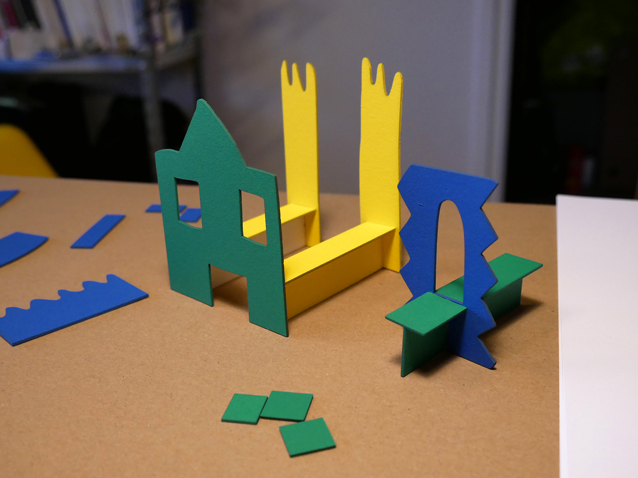 Conjuguant les envies de chacun·e et les besoins de la structure, nous avons formulé de nouveaux usages, ainsi que les objets qui y répondaient. Par le biais du dessin, de l’écrit, ou encore de la maquette, nous avons donné forme à un ensemble de mobilier: trois objets sont nés de cette phase de formalisation au sein de chaque collège.