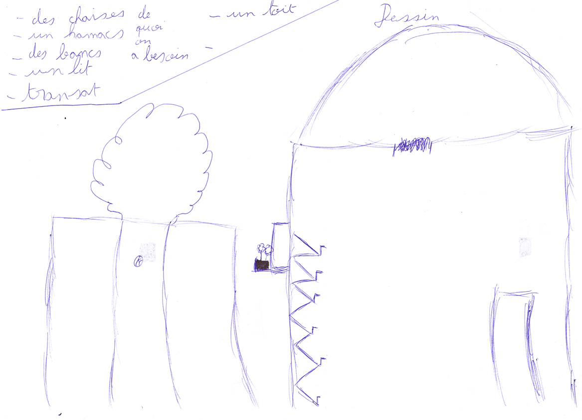 Conjuguant les envies de chacun·e et les besoins de la structure, nous avons formulé de nouveaux usages, ainsi que les objets qui y répondaient. Par le biais du dessin, de l’écrit, ou encore de la maquette, nous avons donné forme à un ensemble de mobilier: trois objets sont nés de cette phase de formalisation au sein de chaque collège.