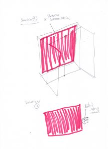 En écho constant avec les usages définis collectivement, par le biais d’esquisses, de maquettes et de plans, nous avons donné forme aux pistes identifiées avec l’ensemble des acteur·rice·s du projet (jeunes, professionnel·le·s, direction, conseiller technique, etc.) lors de la MIAA. Cette deuxième phase a également permis de mettre en situation les pistes, de les confronter aux réalités spatiales, sociales, logistiques et pratiques et d’avancer vers la concrétisation du projet.