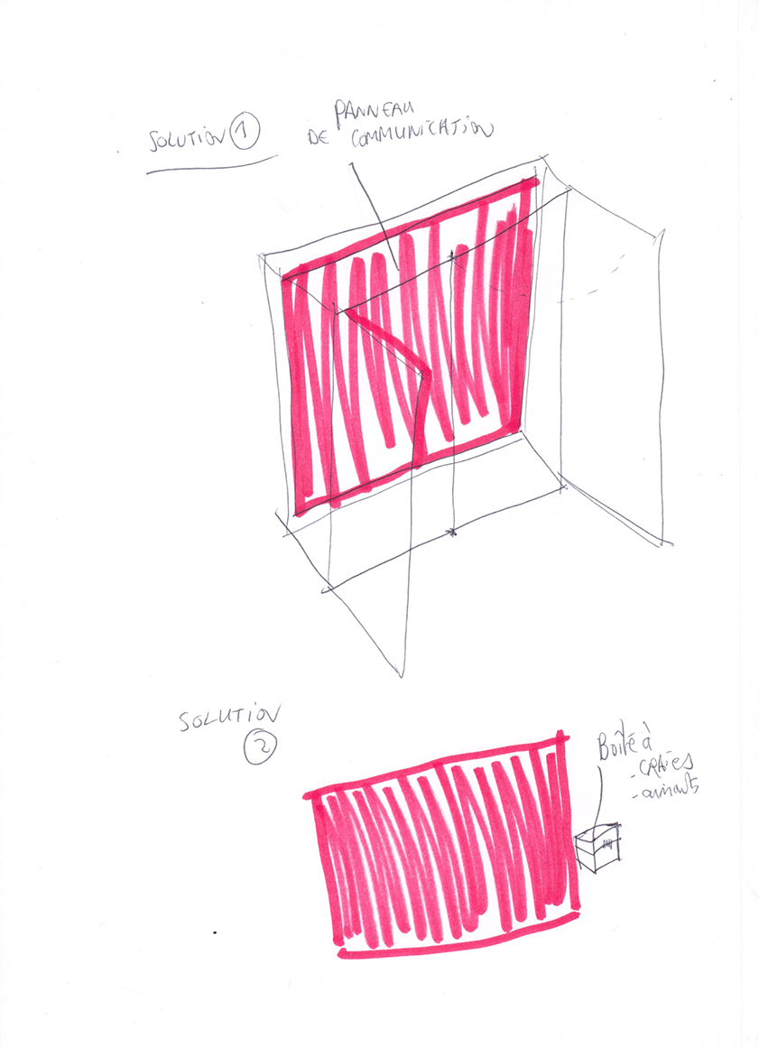 Ainsi une table/surface d'affichage et un mobilier d'exposition nomades ont été construits. D'abord selon des plans et maquettes, puis à échelle 1 grâce à La Fraise.