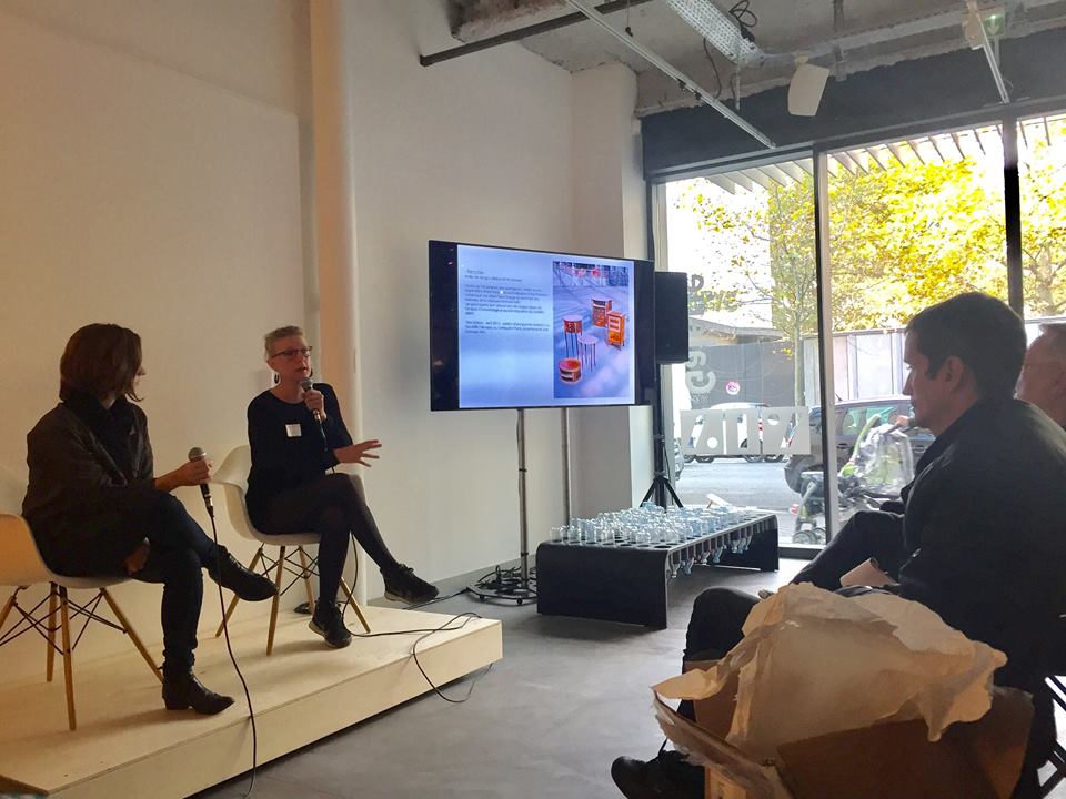 Ainsi une table/surface d'affichage et un mobilier d'exposition nomades ont été construits. D'abord selon des plans et maquettes, puis à échelle 1 grâce à La Fraise.
