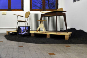 Ainsi une table/surface d'affichage et un mobilier d'exposition nomades ont été construits. D'abord selon des plans et maquettes, puis à échelle 1 grâce à La Fraise.