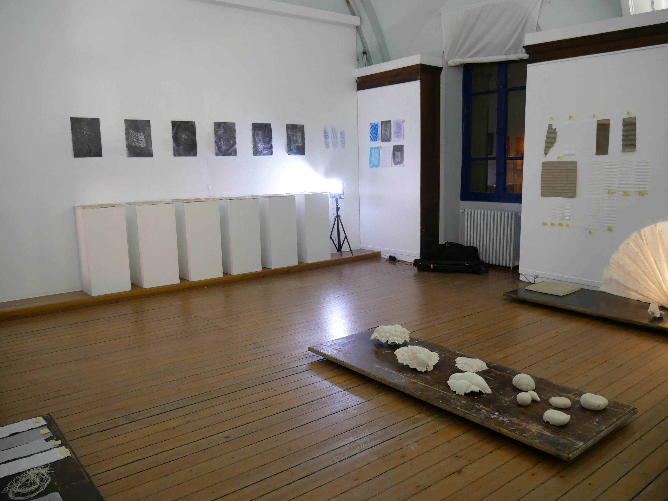 Ainsi une table/surface d'affichage et un mobilier d'exposition nomades ont été construits. D'abord selon des plans et maquettes, puis à échelle 1 grâce à La Fraise.