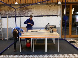 Celle-ci s’est déroulée au sein de notre atelier, à Armentières. Elle se compose de différentes étapes clés: la formalisation finale, la fabrication d’une maquette qui permettra de partager le projet à l’équipe et aux jeunes de l’UEAJ de Lens. Une fois le projet validé par toutes et tous, nous lançons l’étape de conception technique: la réalisation des plans techniques, la recherche des matériaux et fournisseurs, la préparation des protocoles de fabrication participative, la pré-fabrication de certains éléments.