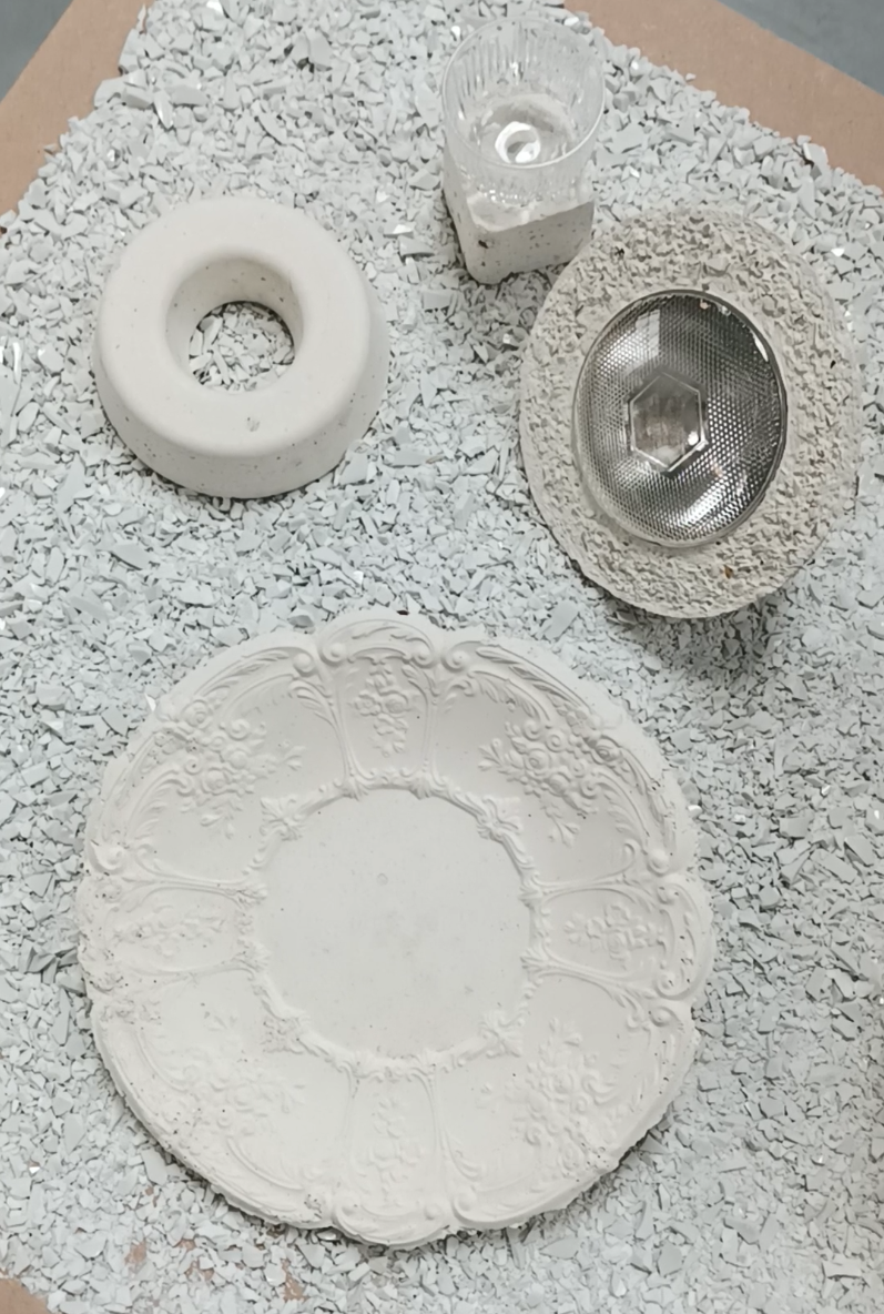 De celle-ci est née une démarche de valorisation de rebuts identifiés au sein de l’organisme solidaire. N’ayant actuellement aucune issue de revalorisation, la faïence invendue ou brisée est devenue notre matière