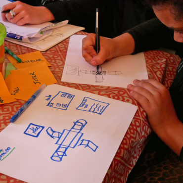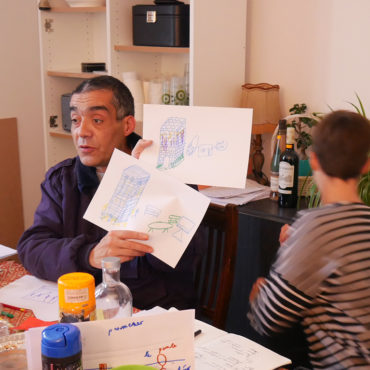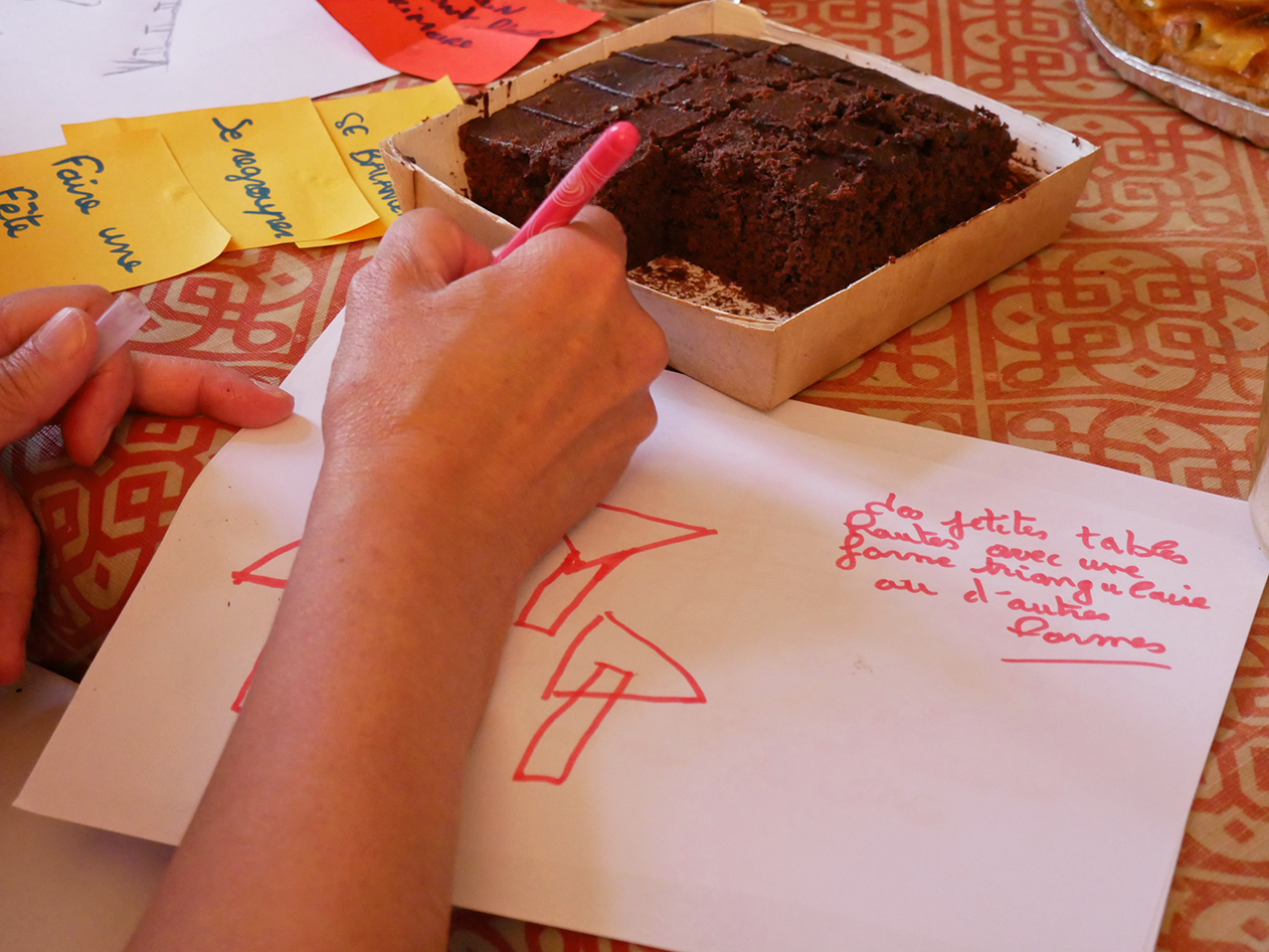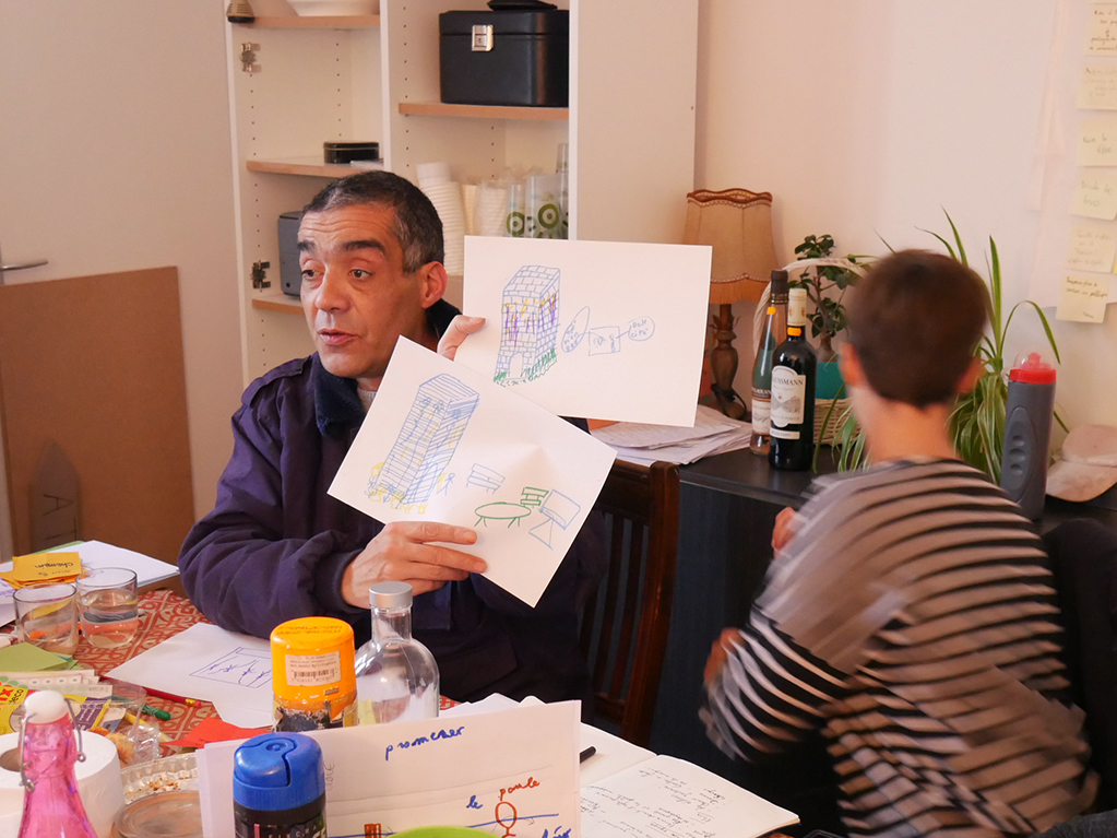 Dernier atelier de formalisation des projets de chacun avant la mise en commun pour aboutir au dessin définitif.