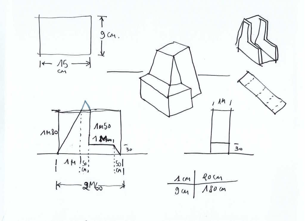 Pour la prochaine séance, il faudra penser à développer l’aspect multi-fonctionnel des modules et réfléchir aux fonctions les mieux appropriées à ce lieu. Egalement appuyer l’aspect ludique, et reprendre l’idée de « décors », de « petit théâtre de marionnettes », de totem à manipuler, etc.