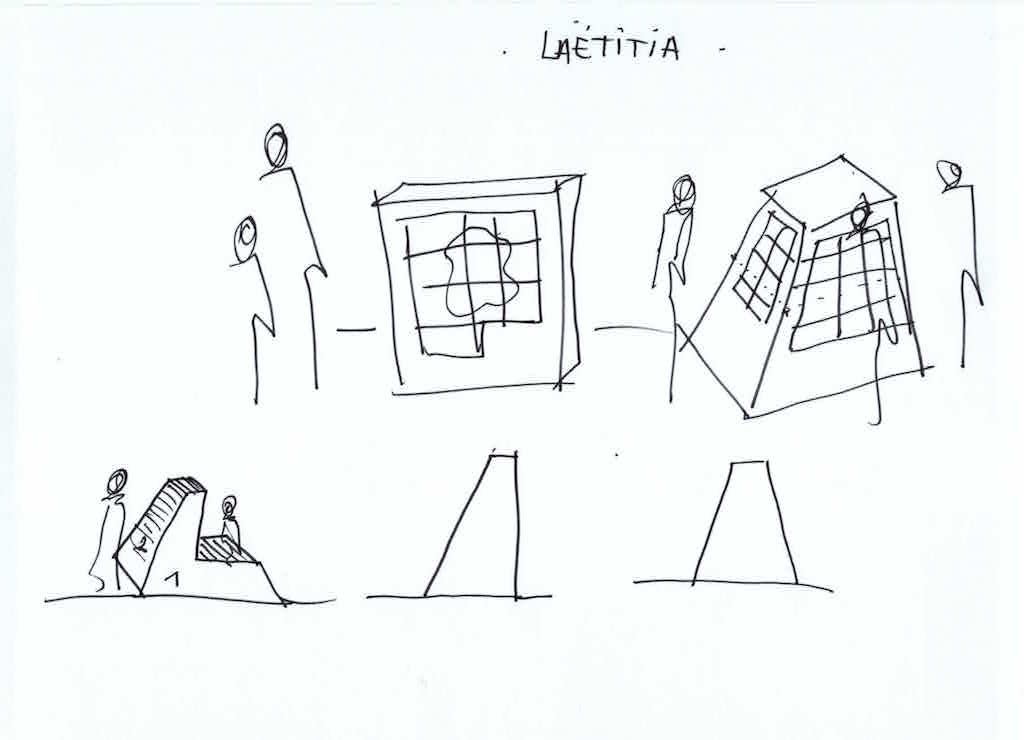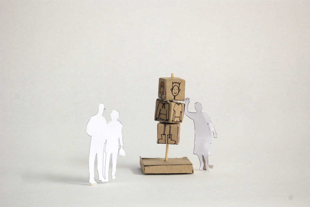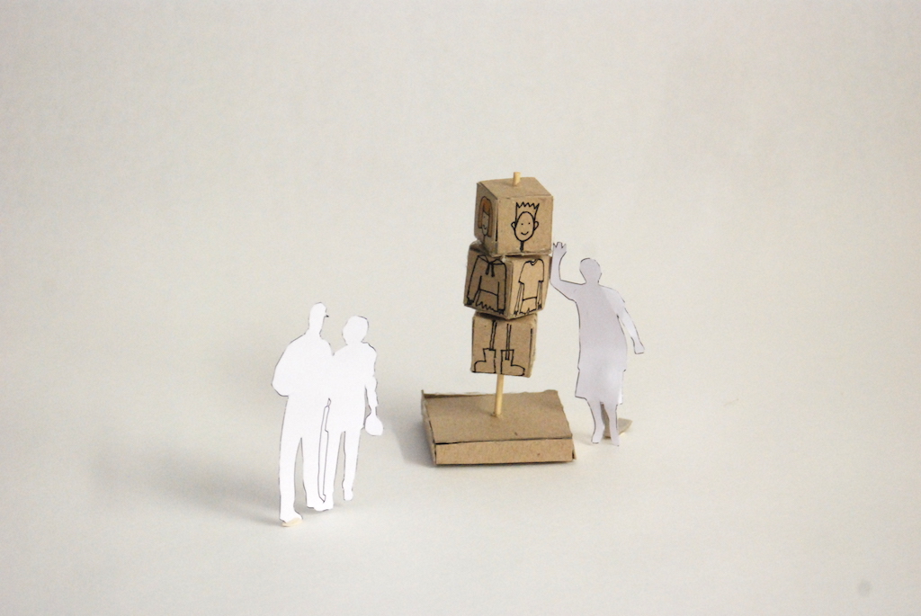 - un totem-puzzle avec lequel on pourrait jouer en tournant des cubes représentants les habitants du quartier ou autre. > idées centrales : ludique, signalétique.
