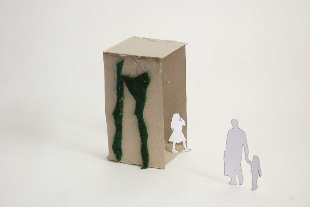 - un kiosque végétalisé qui pourrait servir de petit théâtre, d’abris. > idées centrales : végétalisation, partage, liberté d’usage