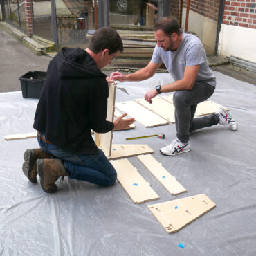 Celle-ci s’est déroulée au sein de notre atelier, à Armentières. Elle se compose de différentes étapes clés: la formalisation finale, la fabrication d’une maquette qui permettra de partager le projet à l’équipe et aux jeunes de l’UEAJ de Lens. Une fois le projet validée par toutes et tous, nous lançons l’étape de conception technique: la réalisation des plans techniques, la recherche des matériaux et fournisseurs, la préparation des protocoles de fabrication participative, la pré-fabrication de certains éléments.
