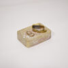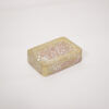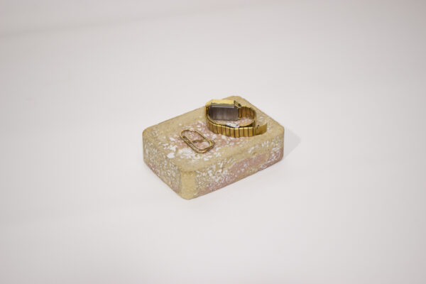 Une fois extrait de son moule, chaque objet est poli et laisse apparaître des fragments et éclats de faïence présents dans sa masse.