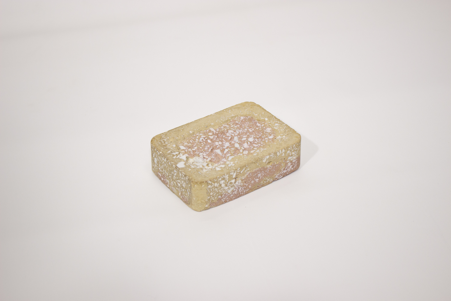 Pour cette édition limitée, le matériau BRIC teinté dans la masse est composé de vaisselle blanche concassée provenant des invendus d’Emmaüs Saint Omer.