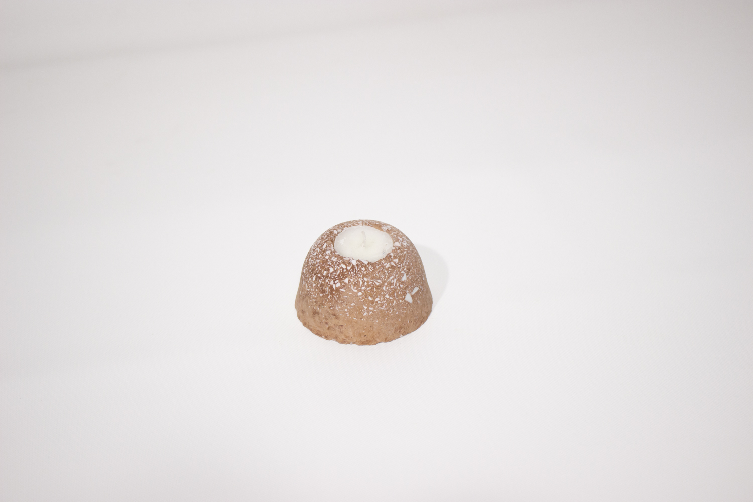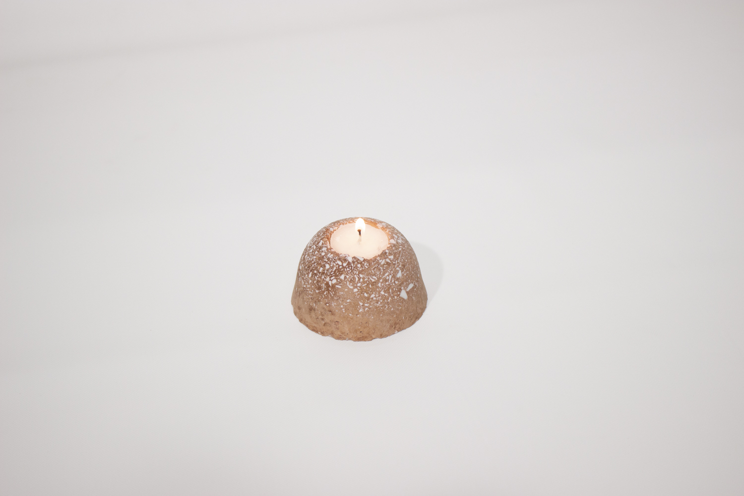 Une fois extrait de son moule, chaque objet est poli et laisse apparaître des fragments et éclats de faïence présents dans sa masse.