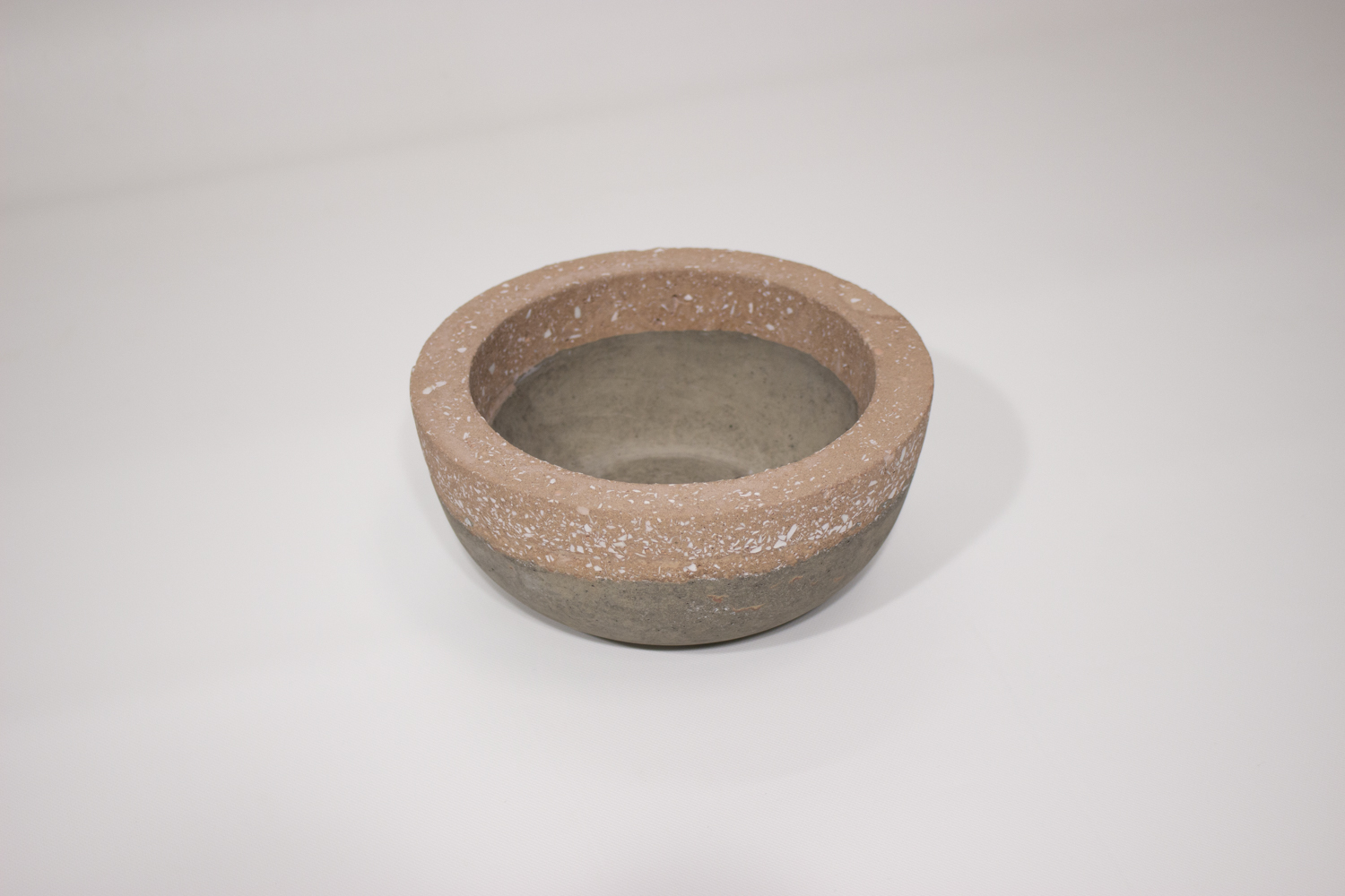 Pour cette édition limitée, le matériau BRIC teinté dans la masse révèle la vaisselle blanche concassée provenant des invendus d’Emmaüs Saint Omer.