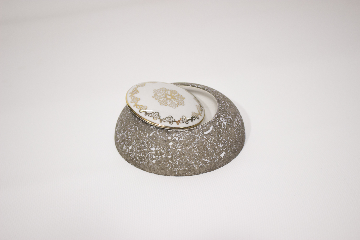 Pour cette édition limitée, le matériau BRIC teinté dans la masse est composé de vaisselle blanche concassée provenant des invendus d’Emmaüs Saint Omer.
