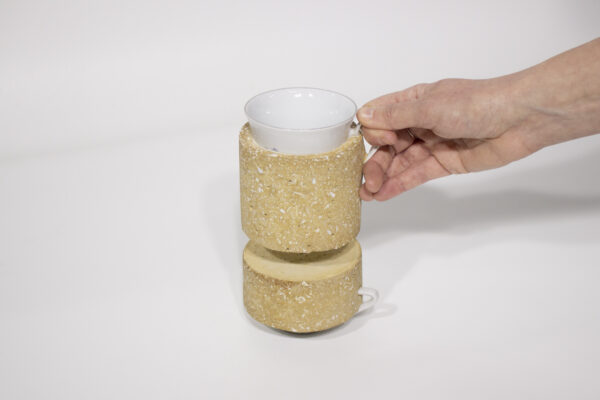 Pour cette édition limitée, le matériau BRIC teinté dans la masse est composé de vaisselle blanche concassée provenant des invendus d’Emmaüs Saint Omer.