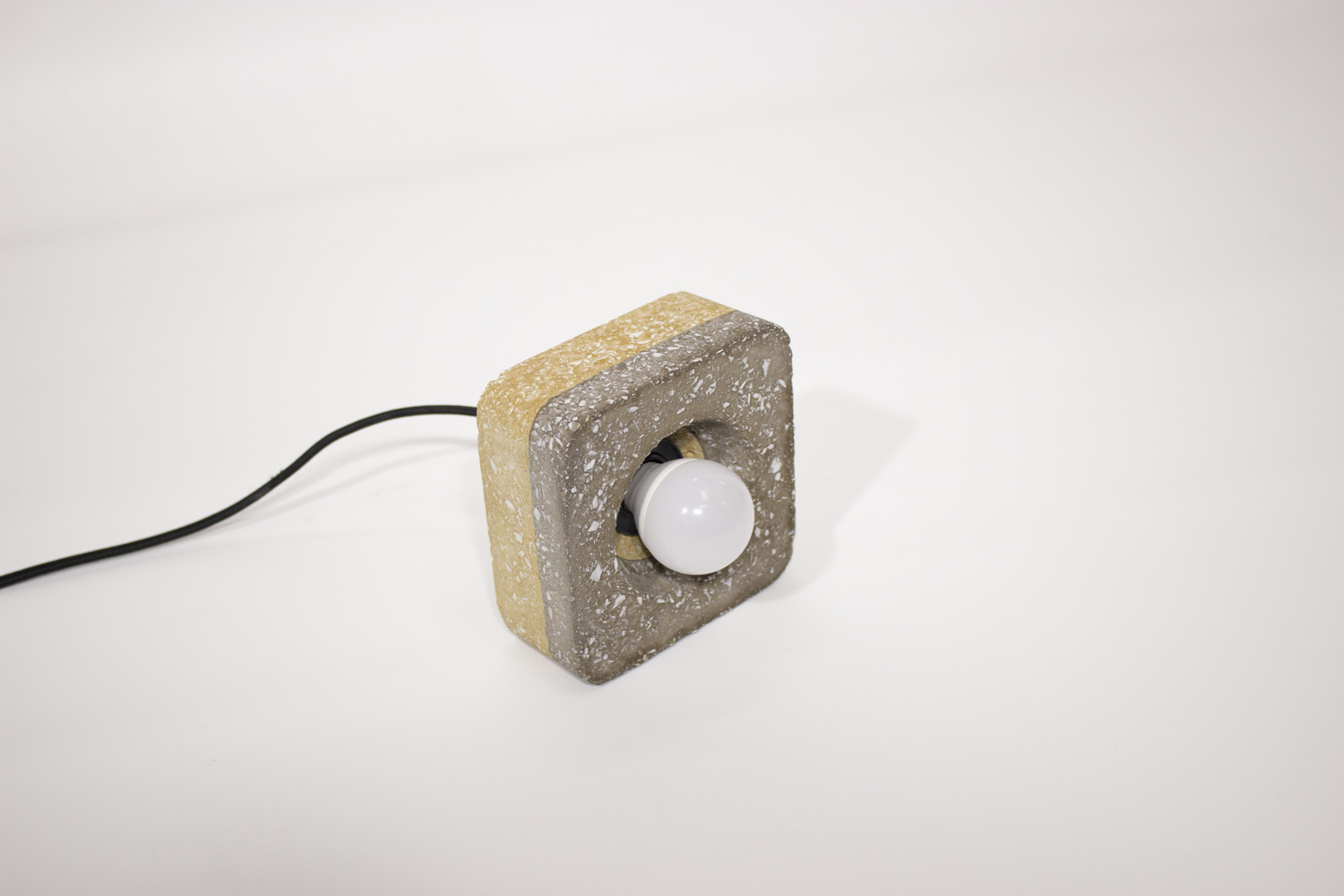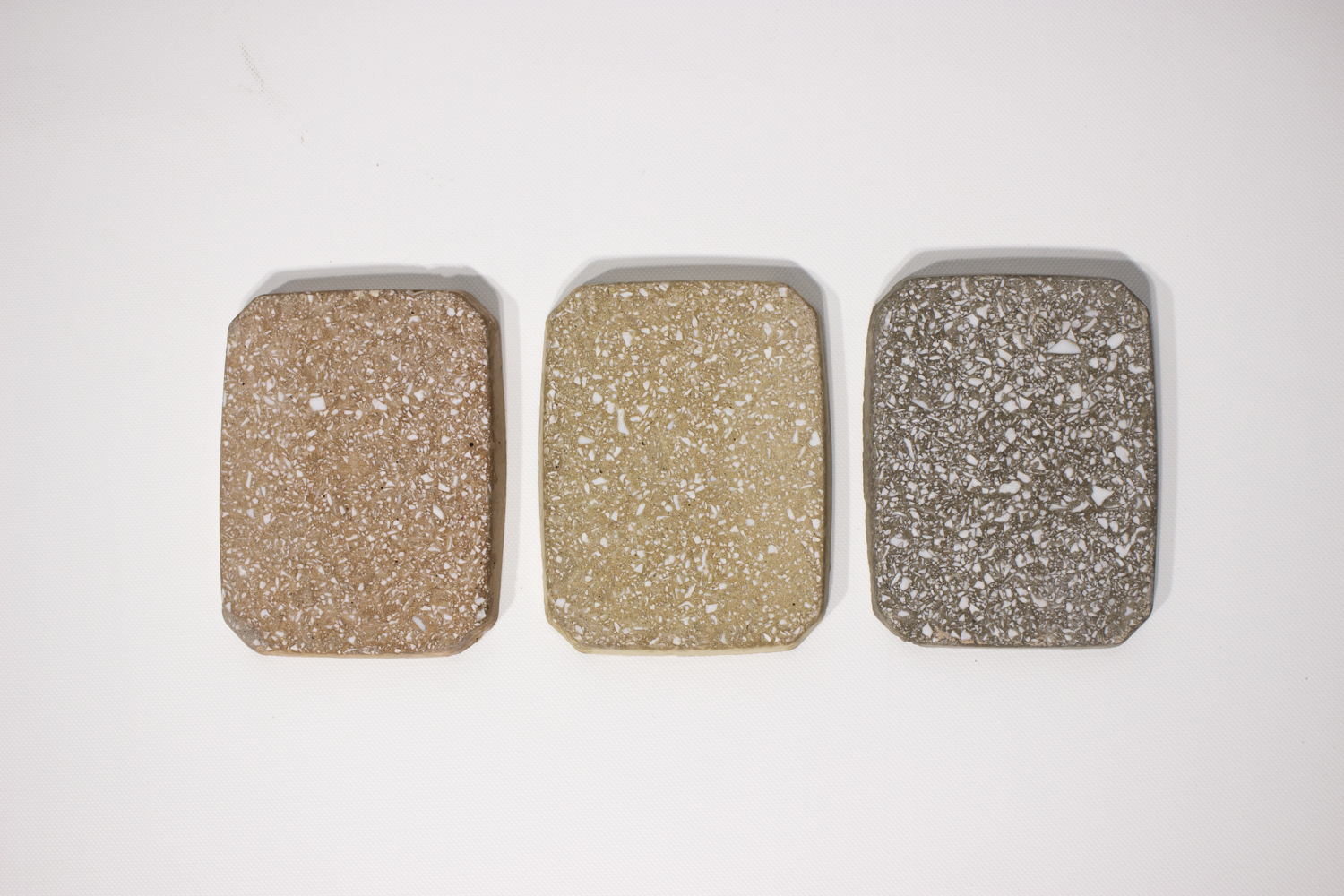 Pour cette édition limitée, le matériau BRIC teinté dans la masse révèle la vaisselle blanche concassée provenant des invendus d’Emmaüs Saint Omer.