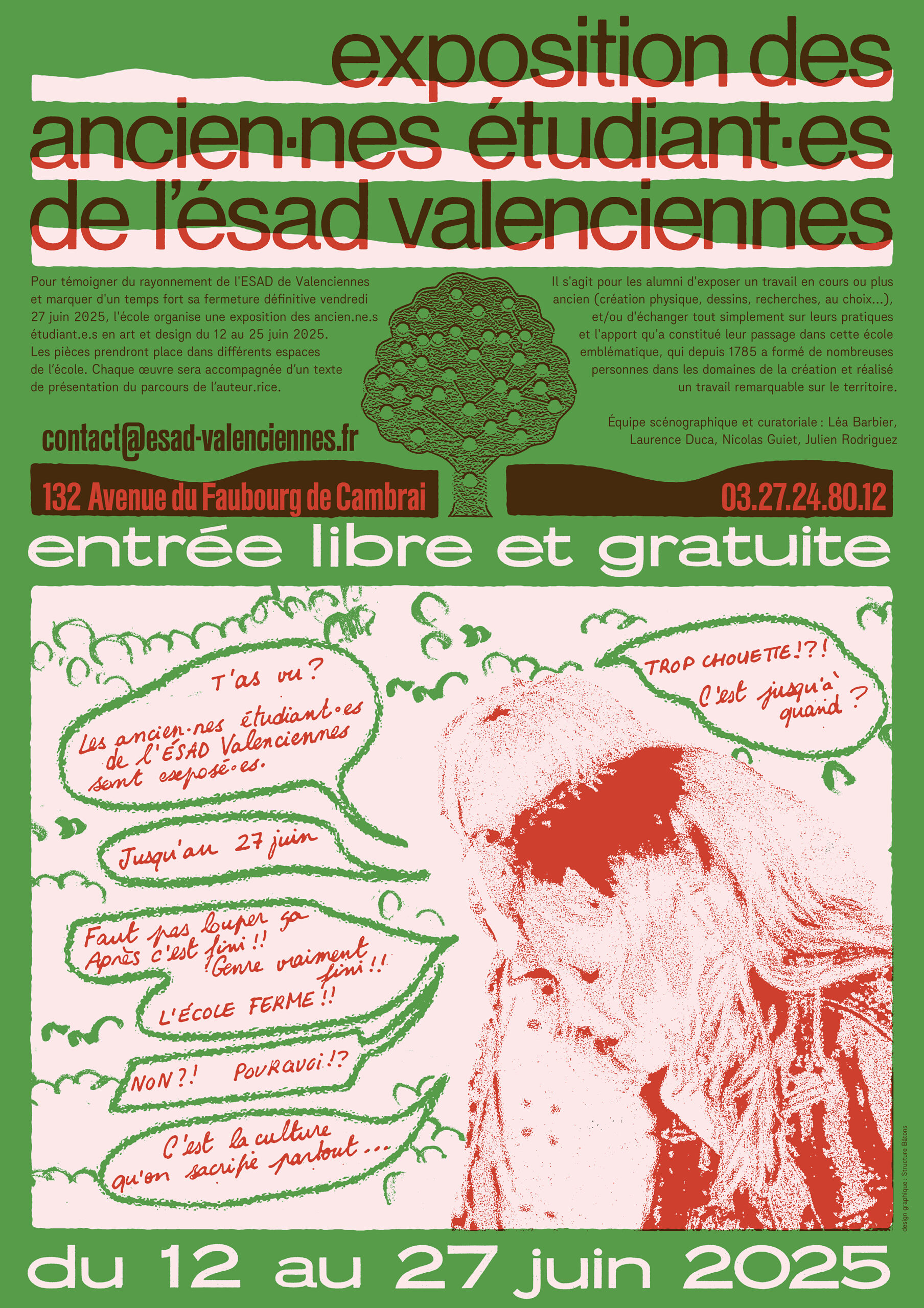 Pour acter sa fermeture tout en refusant de s’éclipser dans le silence, l’ésad Valenciennes a organisé une exposition de ses ancien·nes étudiant·es du 12 a 27 juin 2025 sur le site de l’école. Celle-ci s’est clôturée par une Journée portes fermées le vendredi 27 juin.
