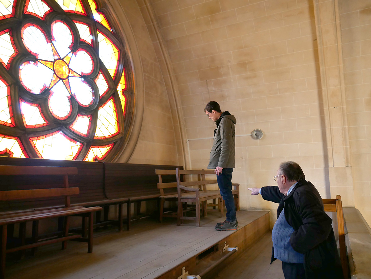 Le chantier a pris place au cœur de l'Unité, dans la cour. Au fil des jours, plusieurs postes et missions s'y sont succédé (découpe, ponçage, vitrification, assemblage, désossage et stockage des anciens meubles, documentation).