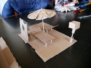 Celle-ci s’est déroulée au sein de notre atelier, à Armentières. Elle se compose de différentes étapes clés: la formalisation finale, la fabrication d’une maquette qui permettra de partager le projet à l’équipe et aux jeunes de l’UEAJ de Lens. Une fois le projet validé par toutes et tous, nous lançons l’étape de conception technique: la réalisation des plans techniques, la recherche des matériaux et fournisseurs, la préparation des protocoles de fabrication participative, la pré-fabrication de certains éléments.