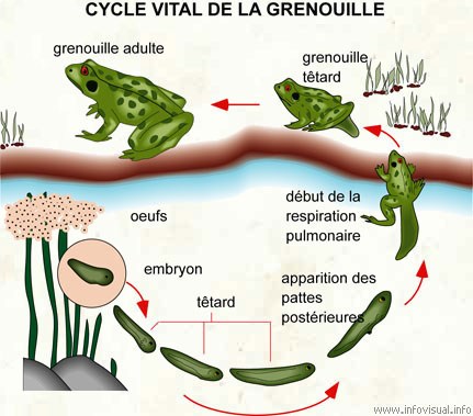 Accouplement – ponte – œuf – éclosion – larve – mues successives – sortie de l’eau – nymphe – éclosion en insecte ailé