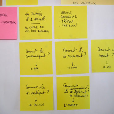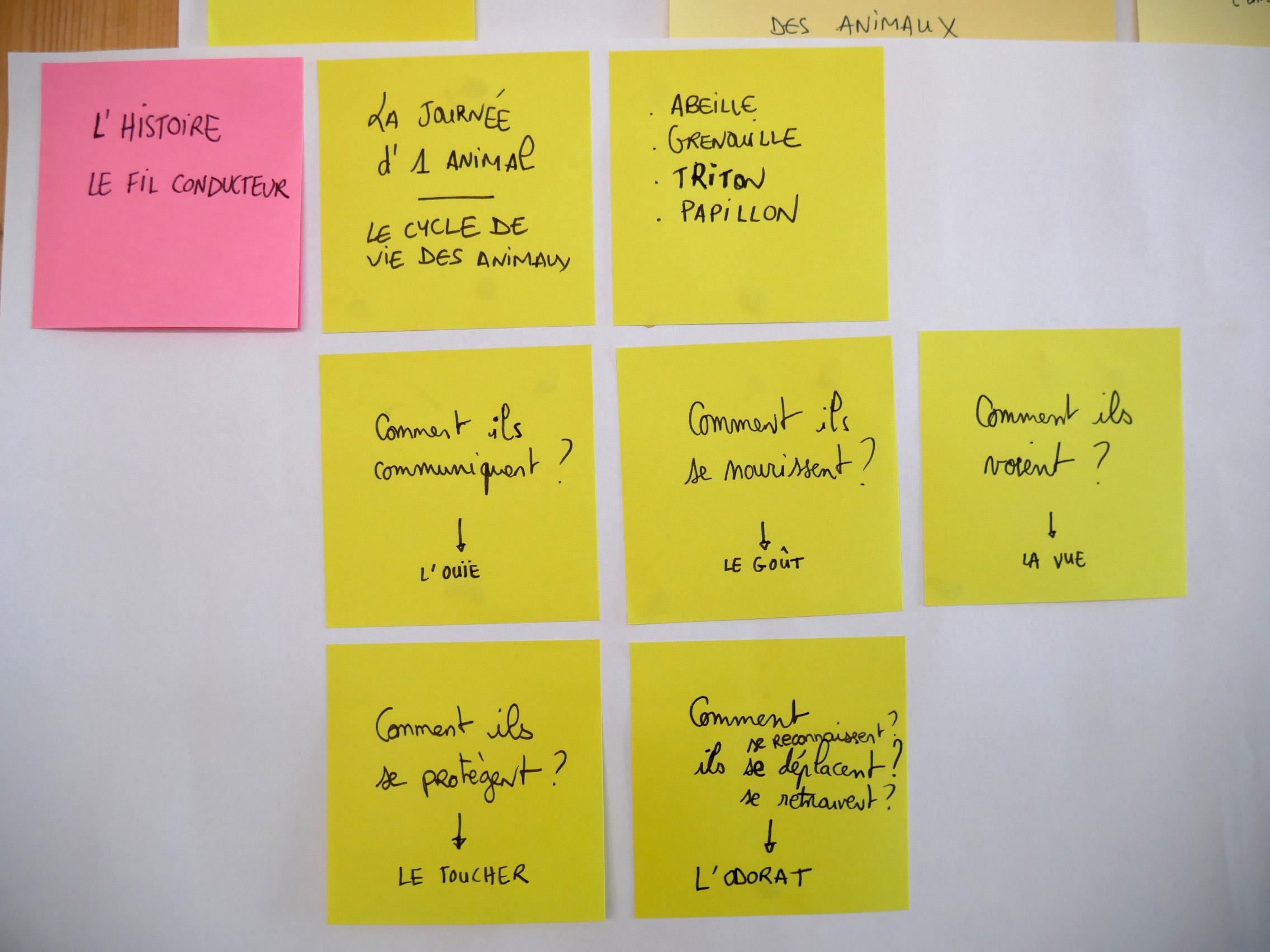 Au programme : on précise les choses, on définit les grands thèmes qu’on veut aborder via les outils pédagogiques que nous allons créer et on commence à émettre des idées en lien.