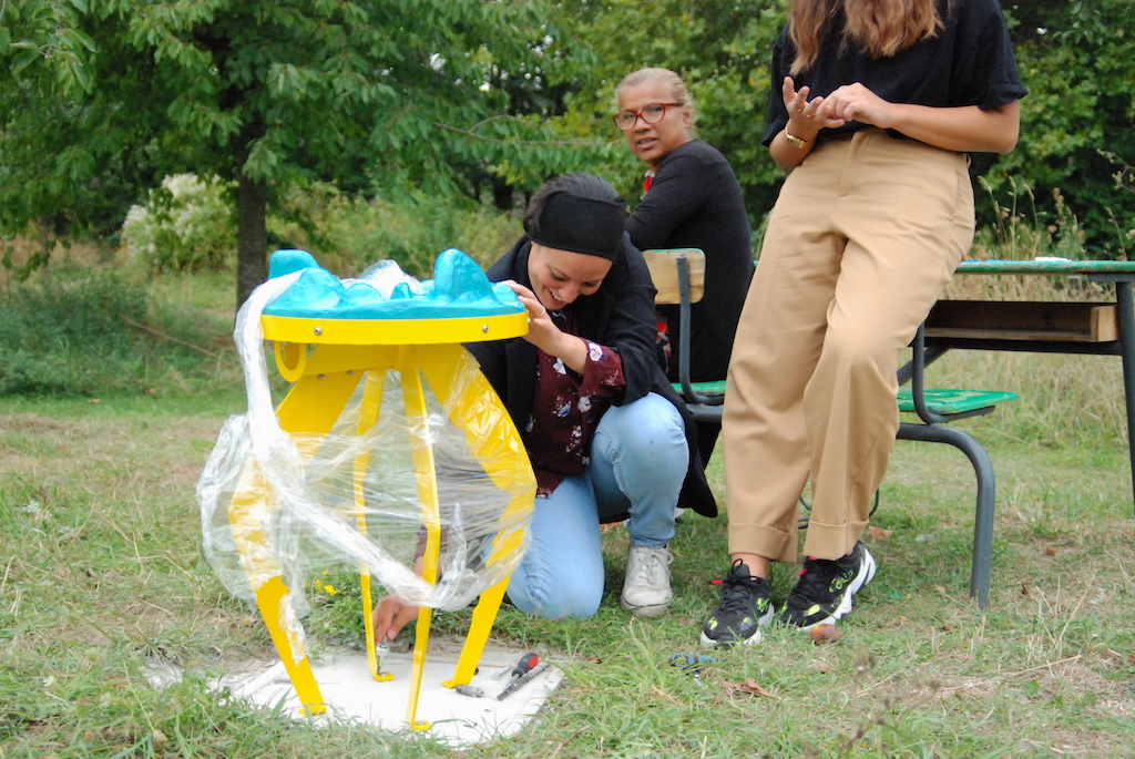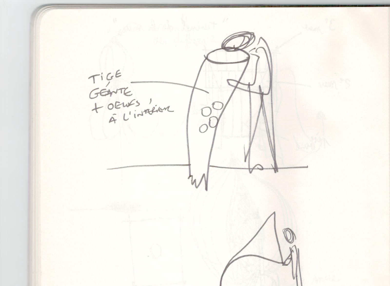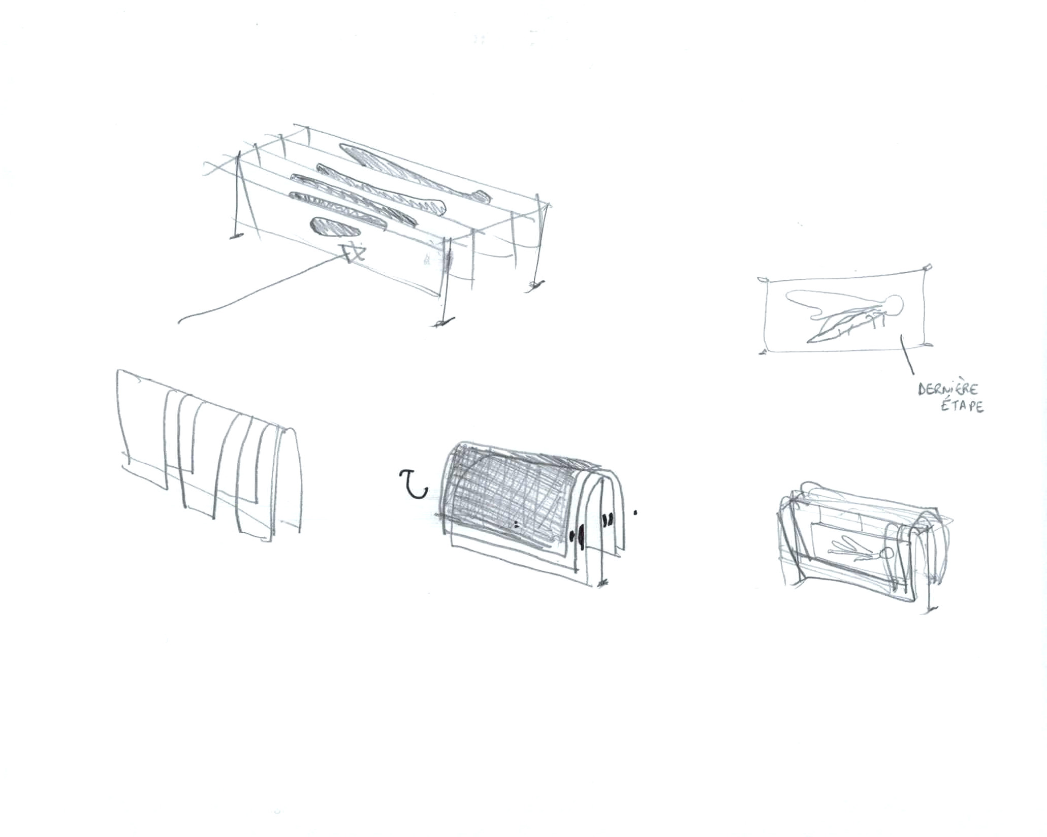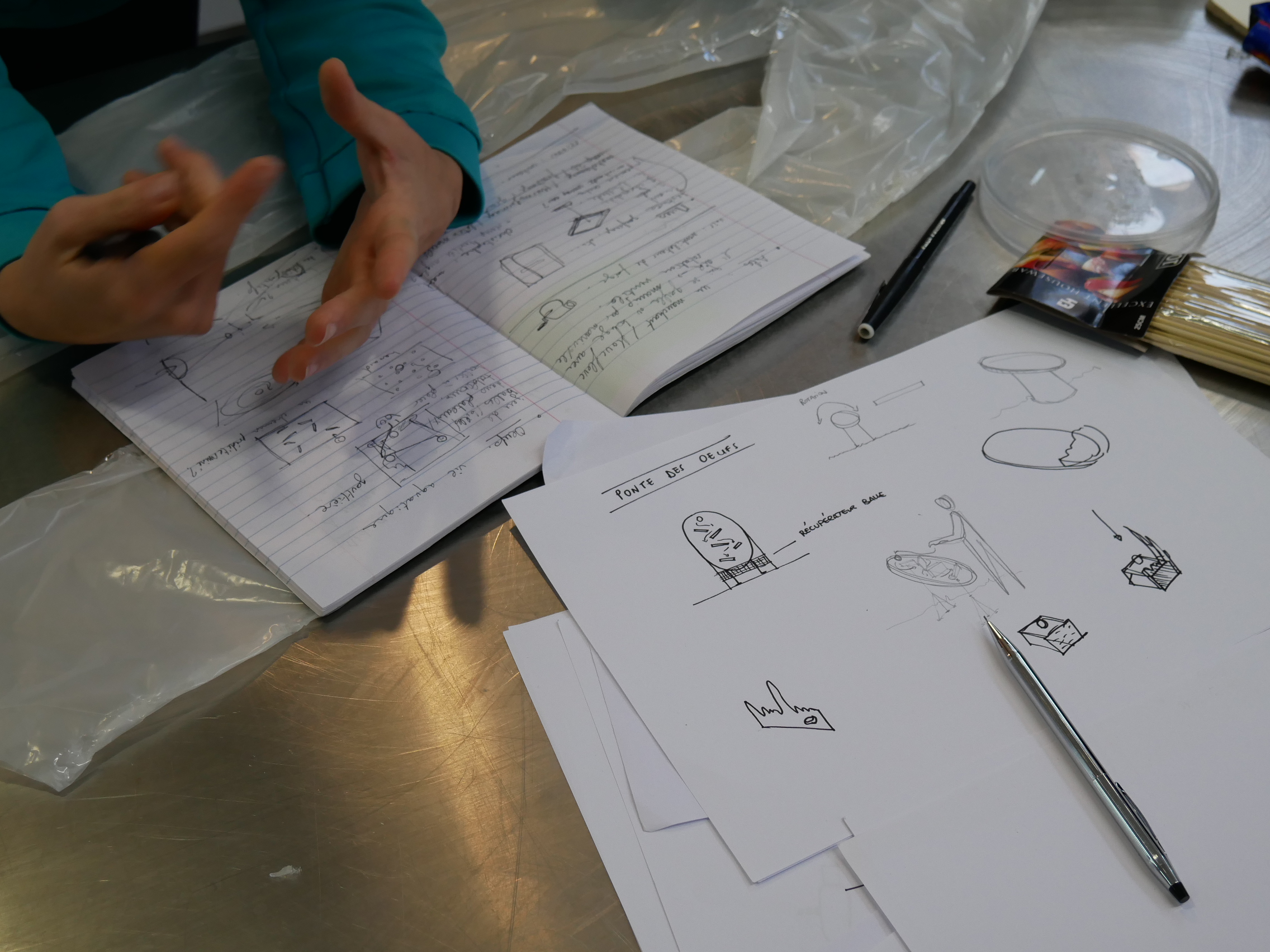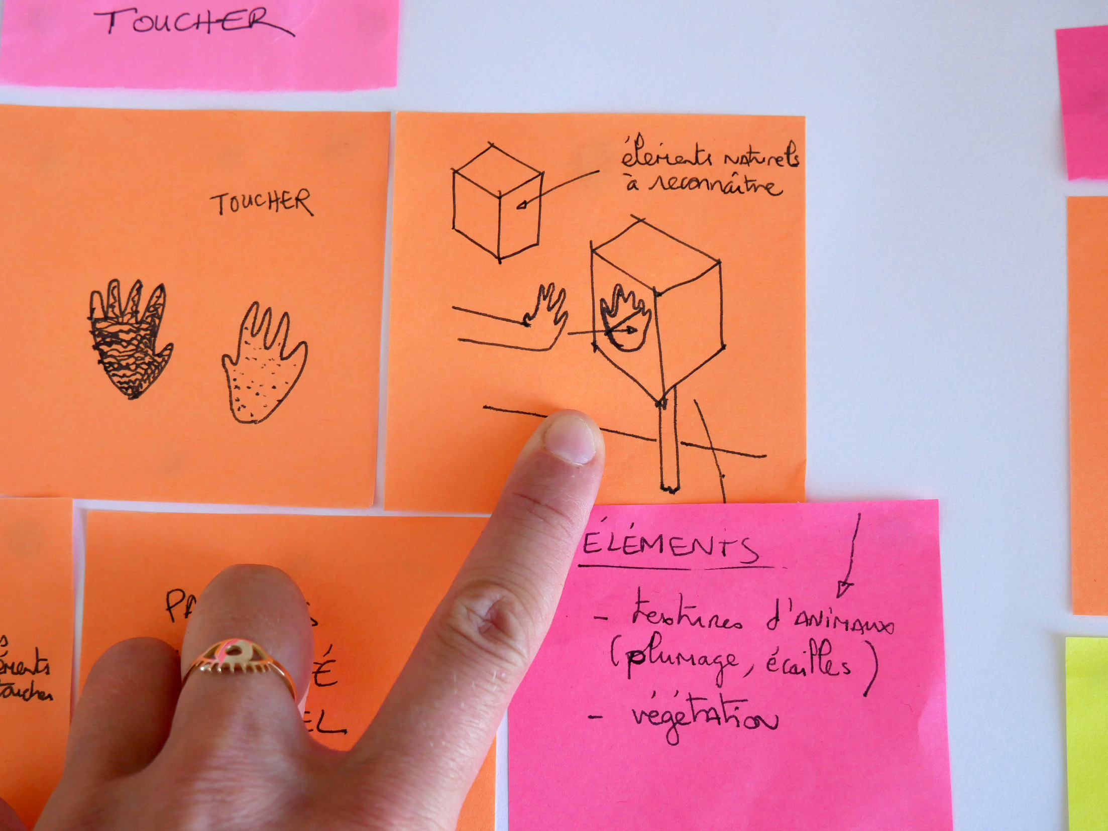 > Des idées folles : un périscope mais pour observer sous l’eau, une cascade, fontaine, un parcours pour se mettre dans la peau d’un animal, reproduire le bruit des animaux, des amplificateurs de son, les fourmis qui sont toutes petites mais qui déplacent de gros trucs, voir comme une libellule, etc.
