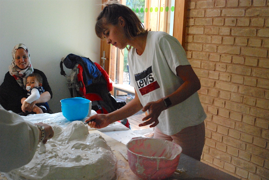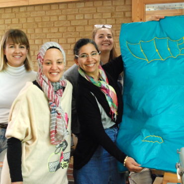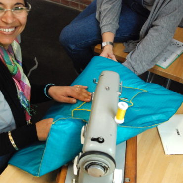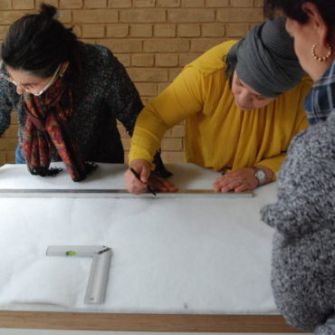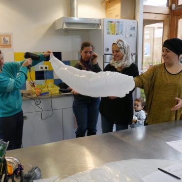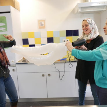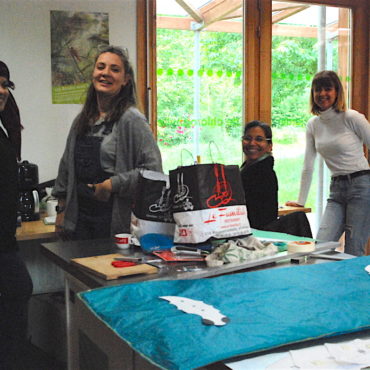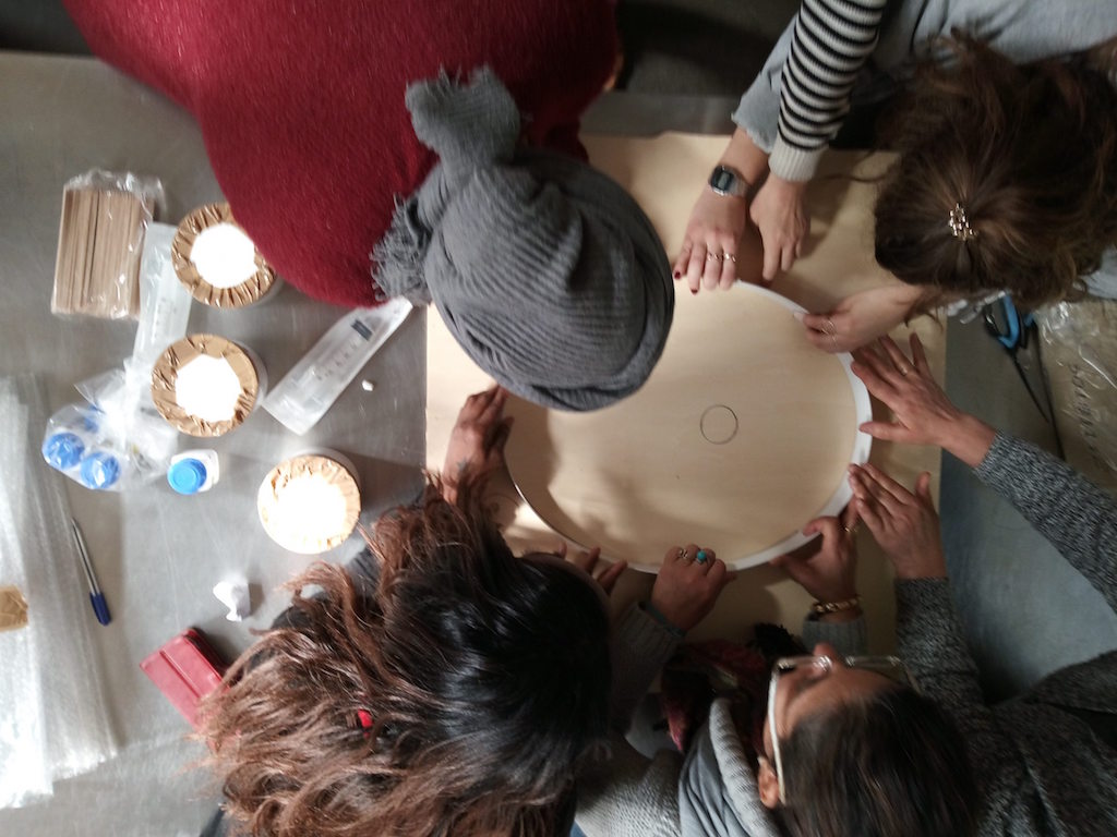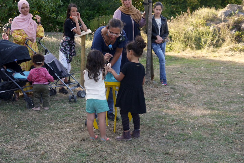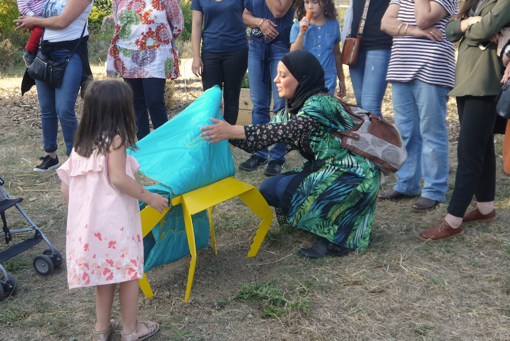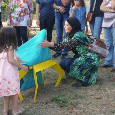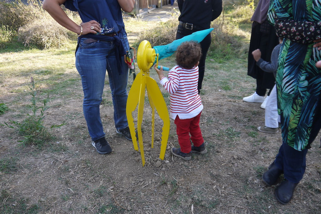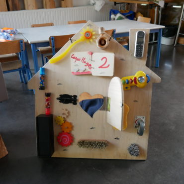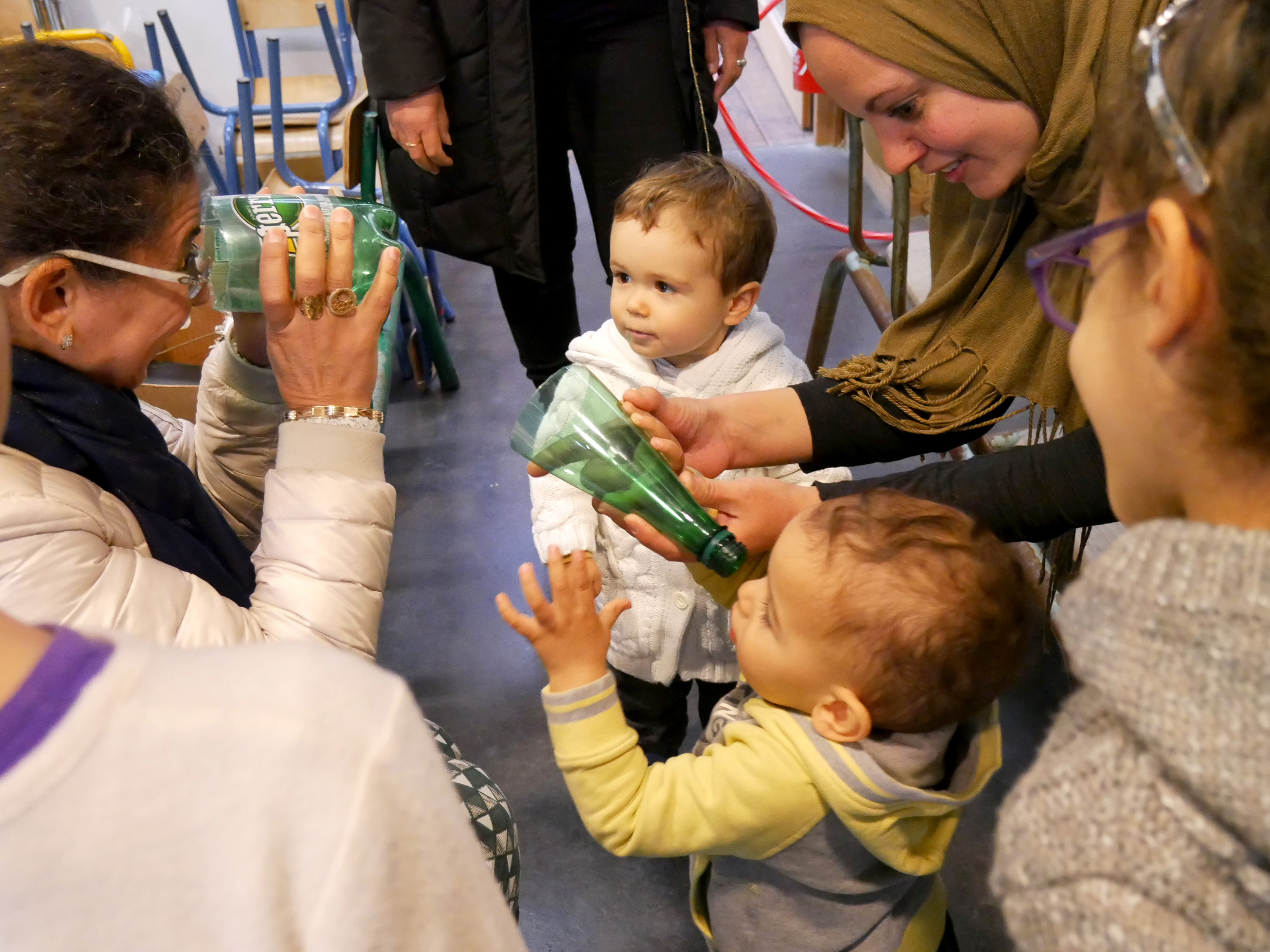 Nous commençons la séance en découvrant les outils pédagogiques inventés et réalisés par Najiba et l’association ARAMA. Cela nous permet de faire un point sur les manipulations, textures, sons et explorations intéressants pour les enfants de 2 à 6 ans.