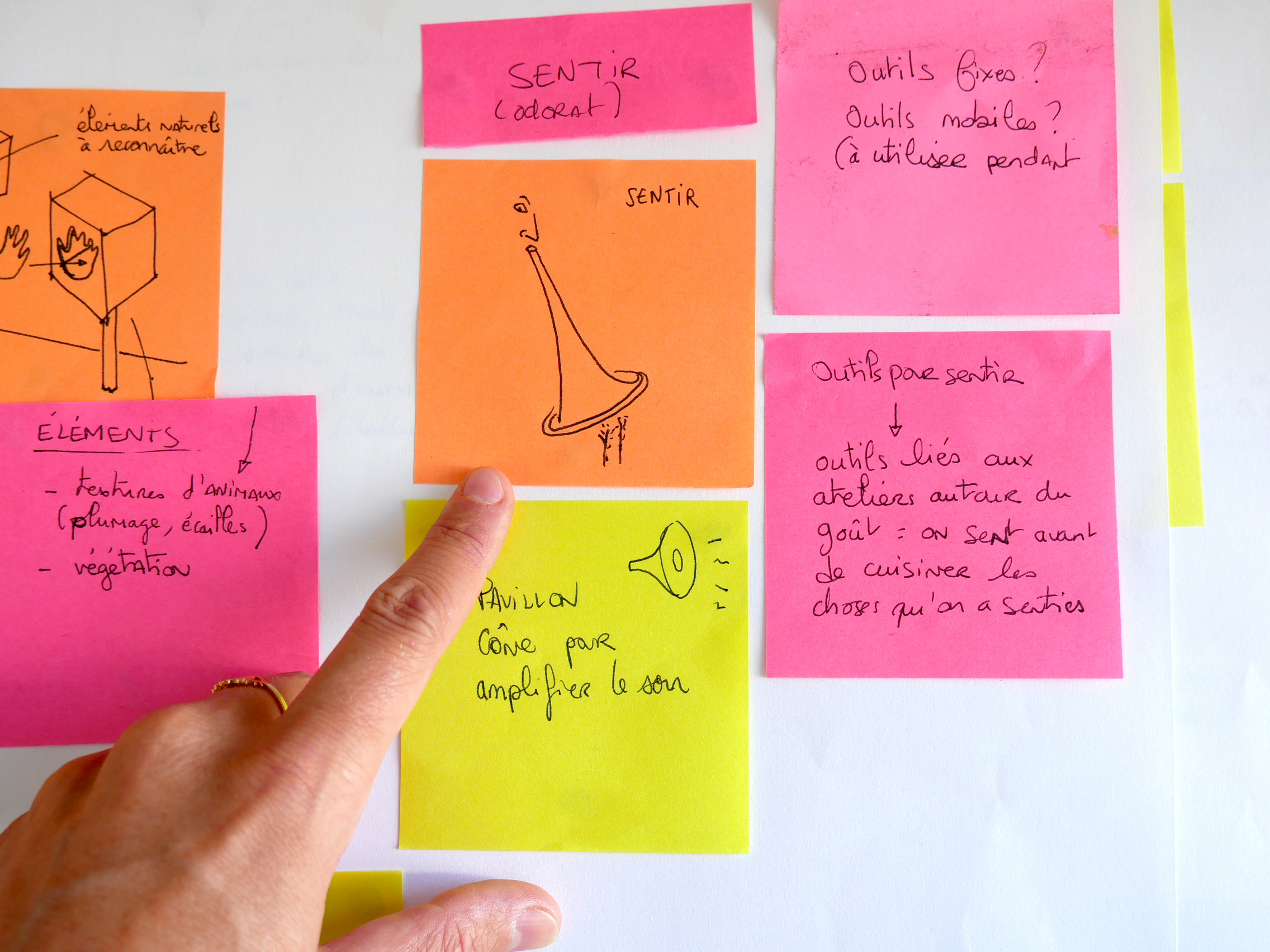 Puis retour à l’intérieur pour poser sur le papier toutes les idées qui ont fusé au fil de la discussion.
