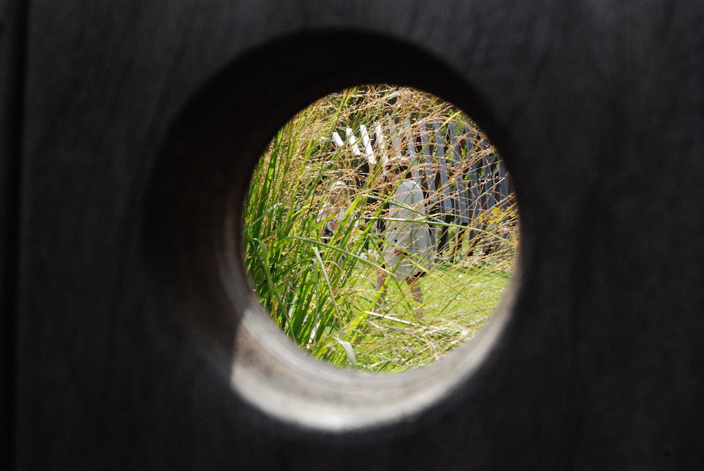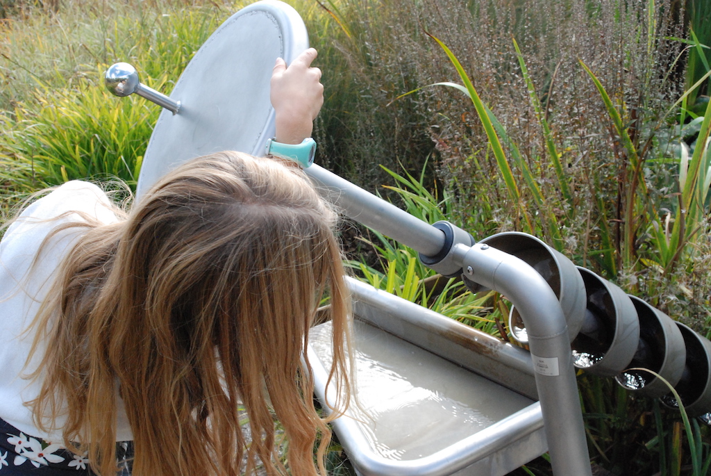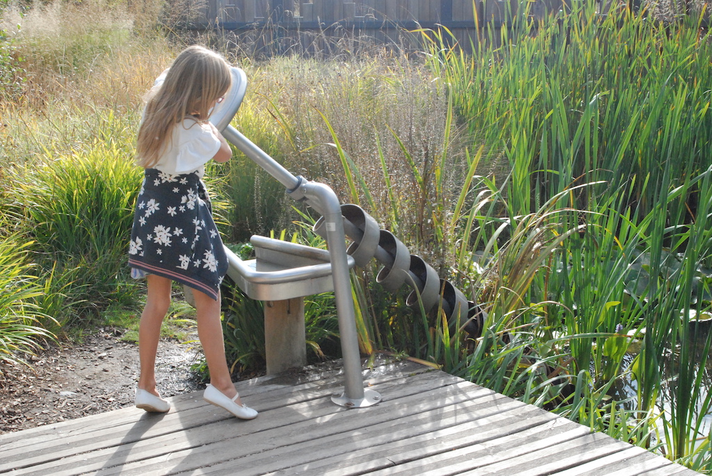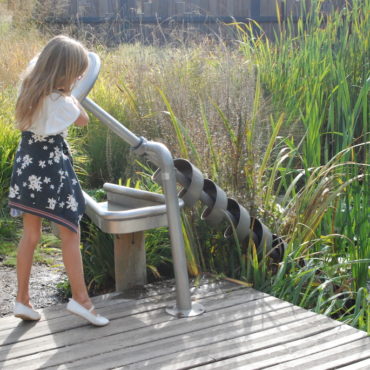 - la vue : observer, regarder sous l’eau (aquascope ici), voir comme une libellule (facettes), ou regarder à travers une installation indiquant un point de vue précis,