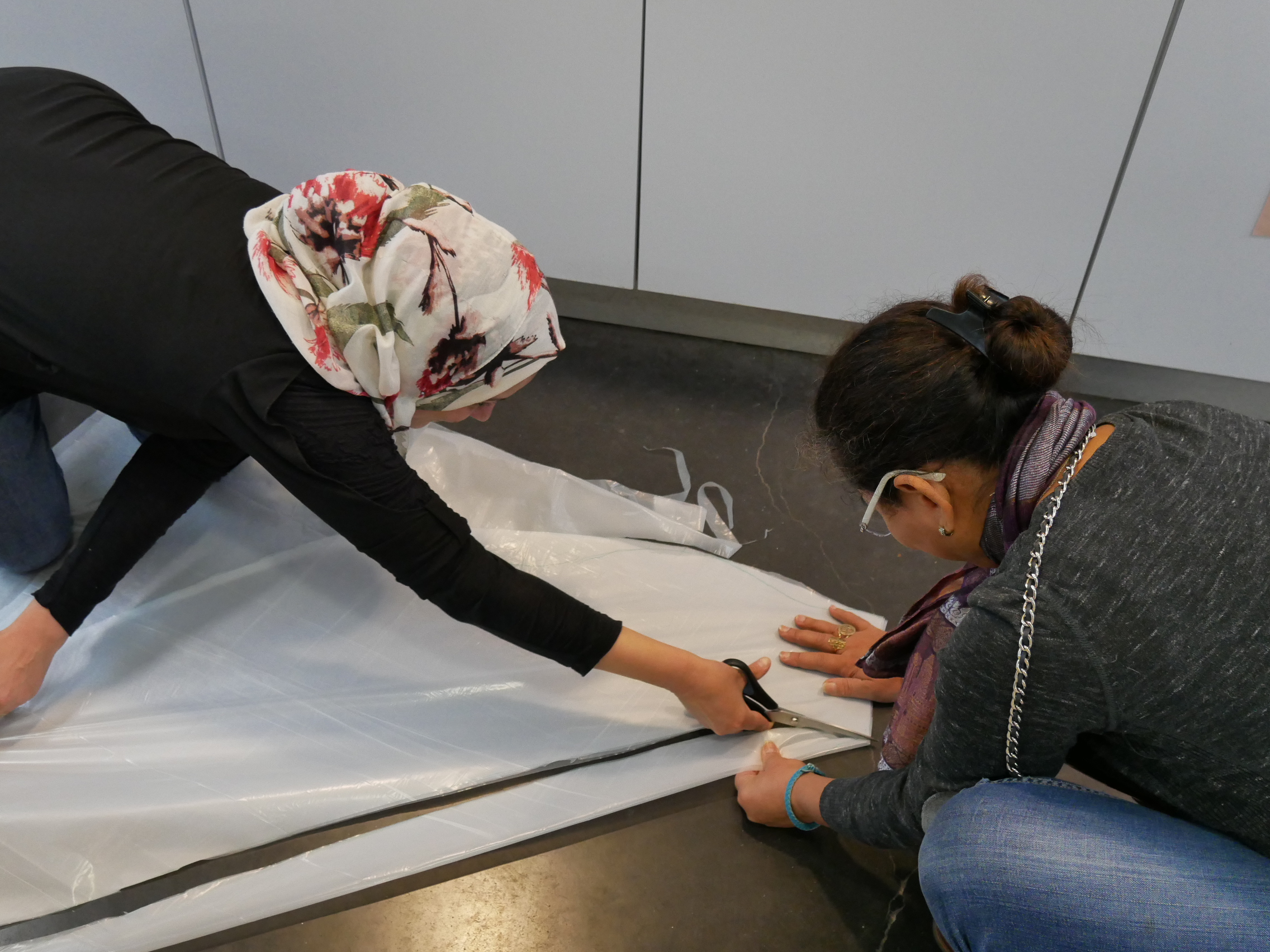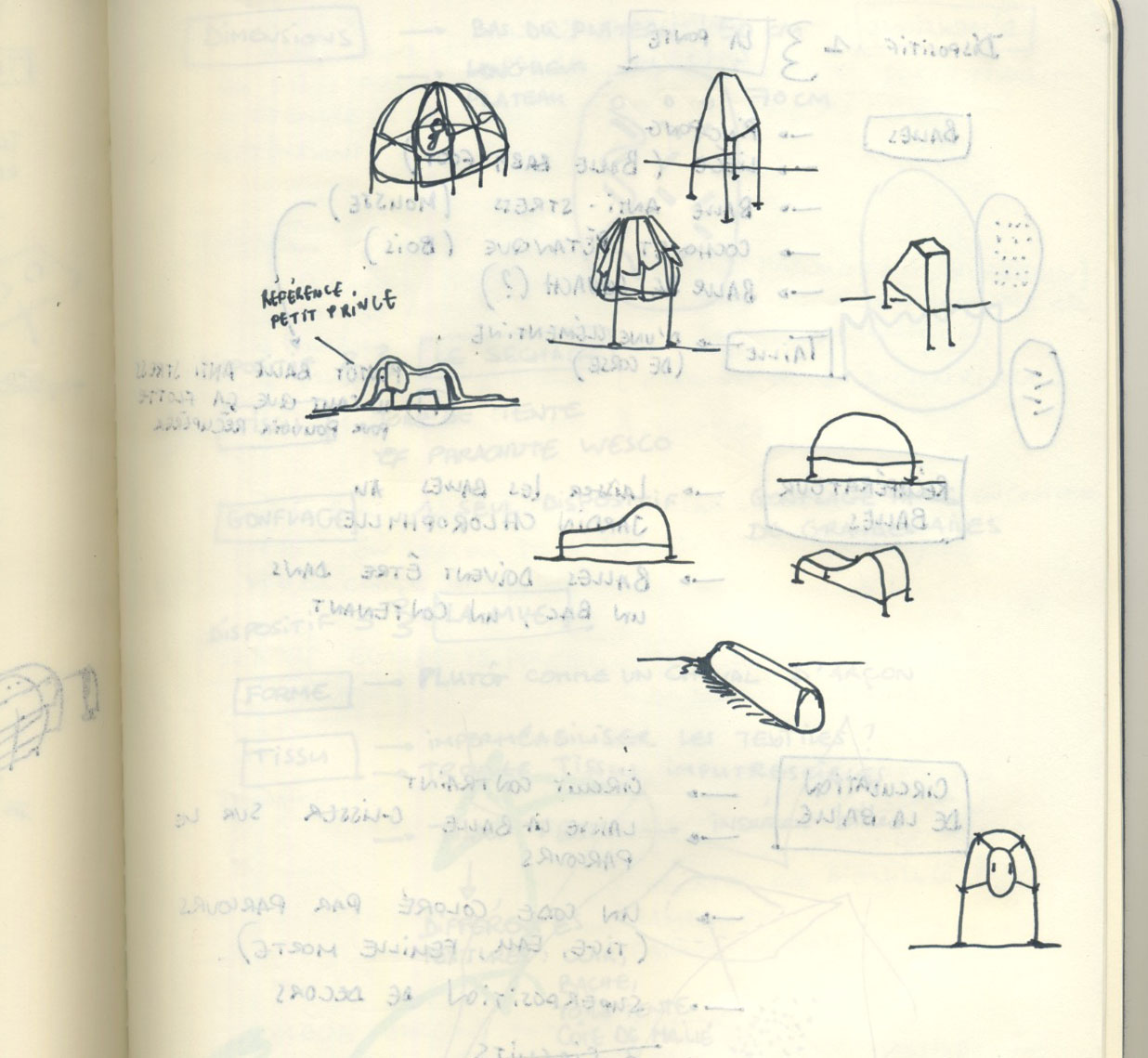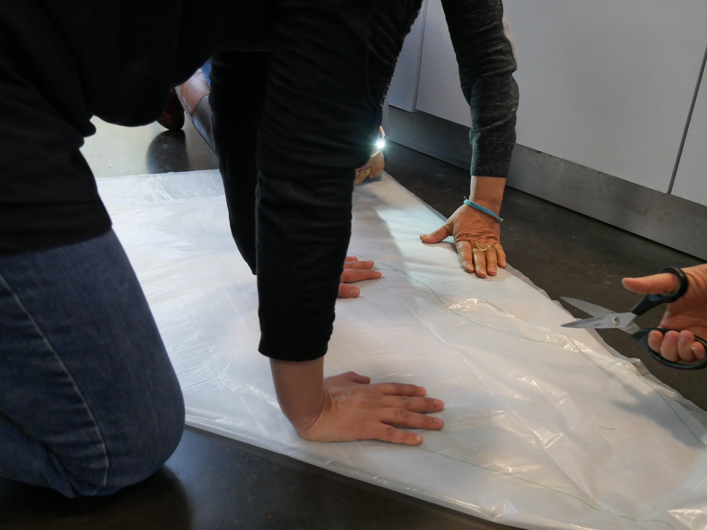 - chercher des idées de matières / matériaux / textures (latex, papier ciré, textile, bâche, tissages ou tuilage de matériaux naturels, …)