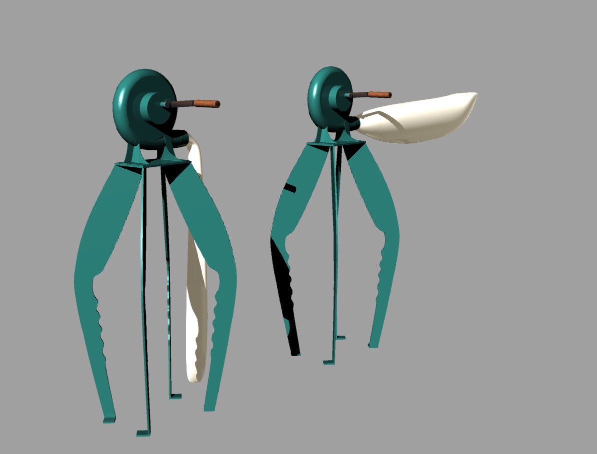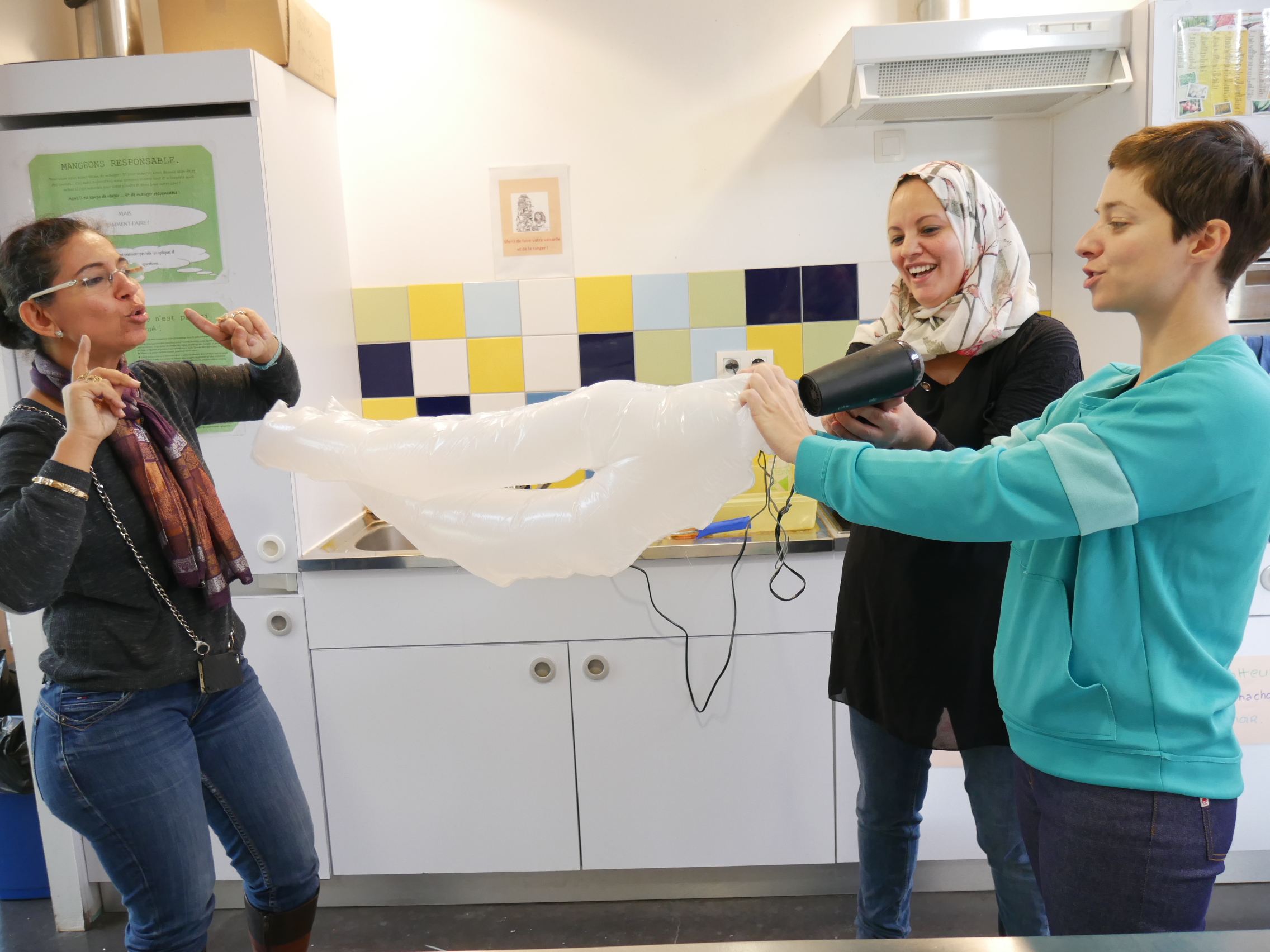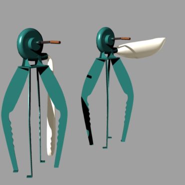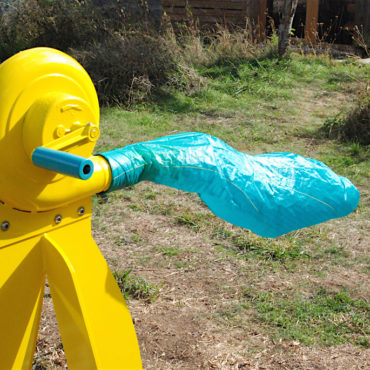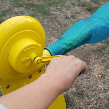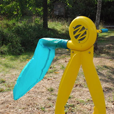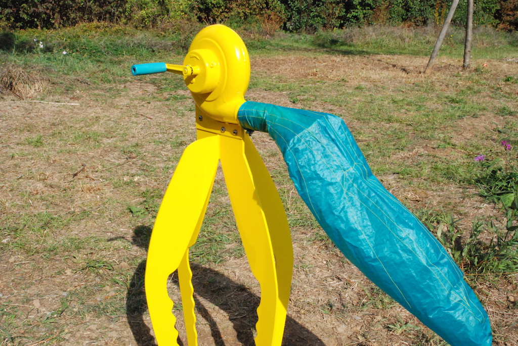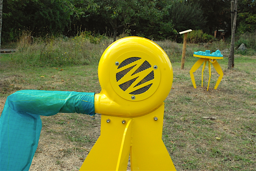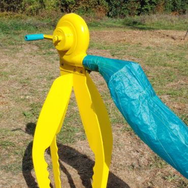 Pour cela, on a pensé à une aile (un manchon ?) qui pourrait être gonflé par la manipulation d’un objet souffleur (hélice, ventilateur, soufflet, …)