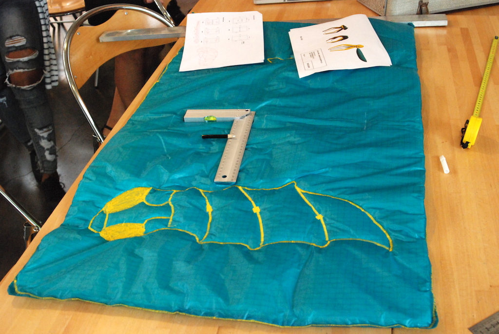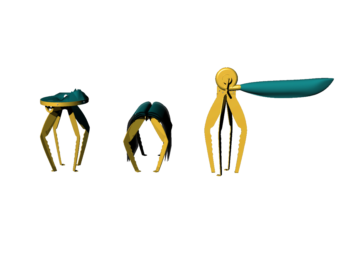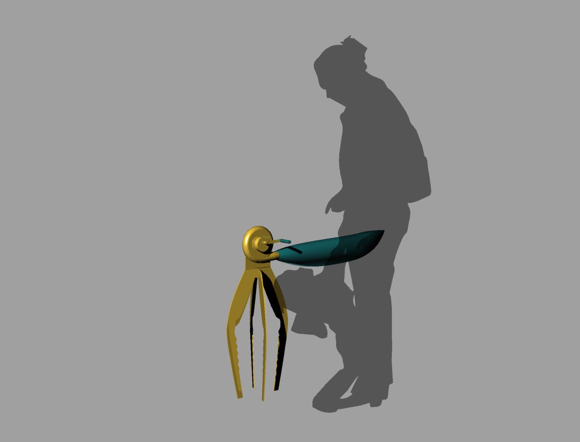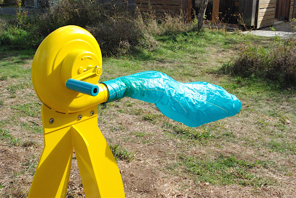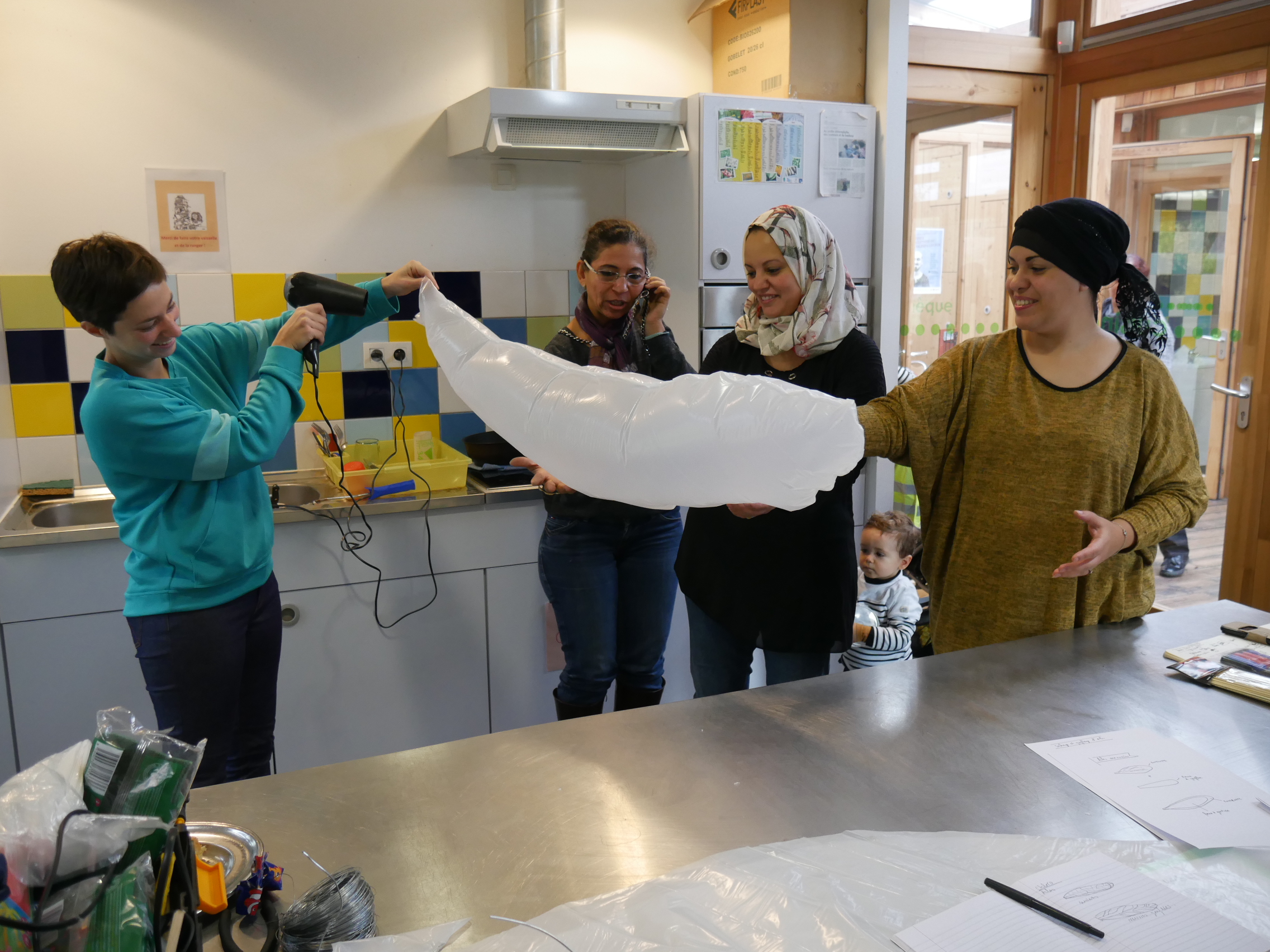 Pour cela, on a pensé à une aile (un manchon ?) qui pourrait être gonflé par la manipulation d’un objet souffleur (hélice, ventilateur, soufflet, …)