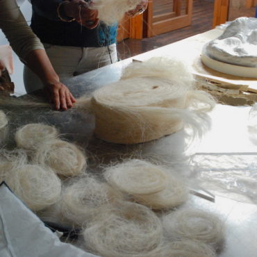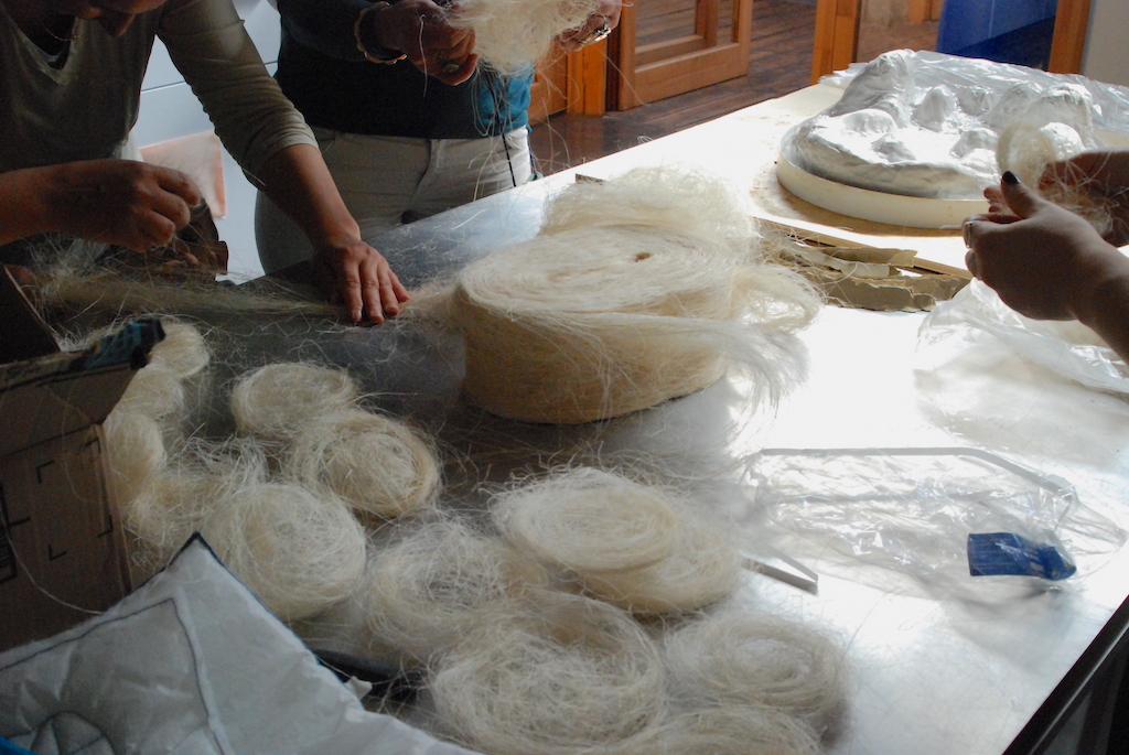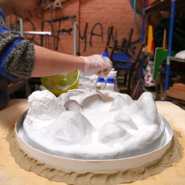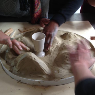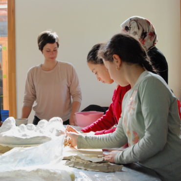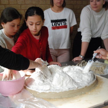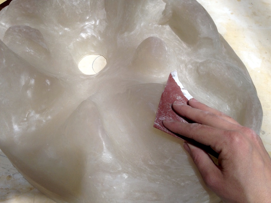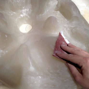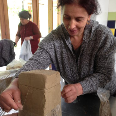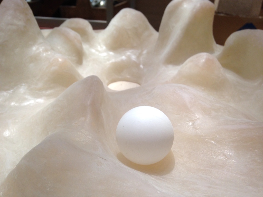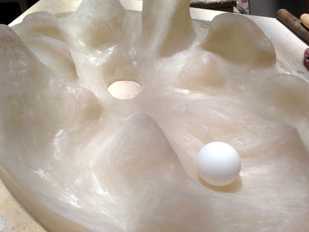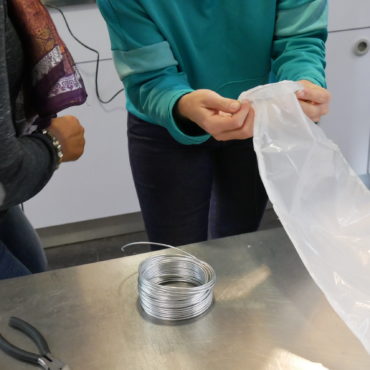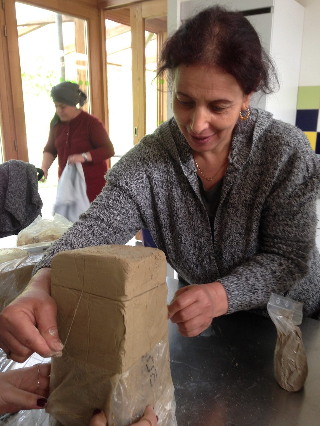 Suite de la fabrication du dispositif de ponte. Aujourd’hui, nous réalisons le moule du modèle en terre modelé la semaine précédente. On a déjà réalisé précédemment un moule-empreinte en silicone. En atelier, nous passons à la réalisation de la chape en plâtre qui servira à rigidifier le moule. Par la suite, nous ferons un tirage en résine de la forme.