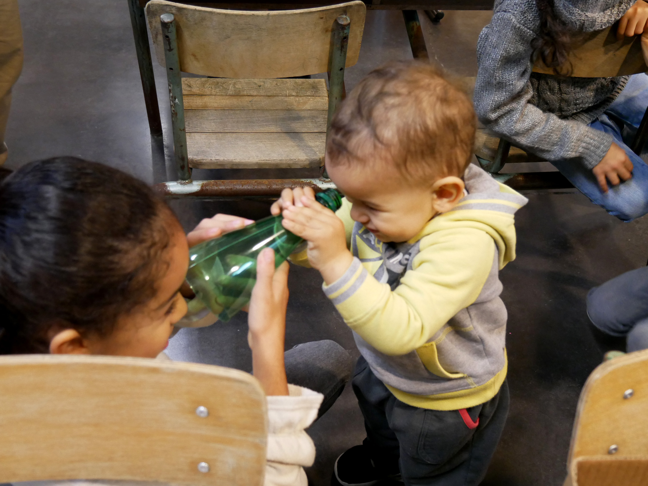 On profite de la présence des enfants pour voir leur réaction face à quelque chose dans lequel regarder.