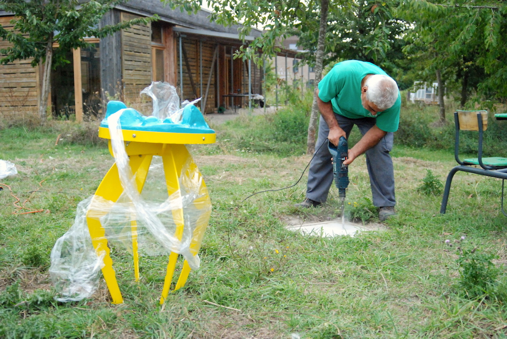 - et surtout implantation des dispositifs sur leur emplacement (des massifs en béton ont été coulés cet été pour les recevoir)