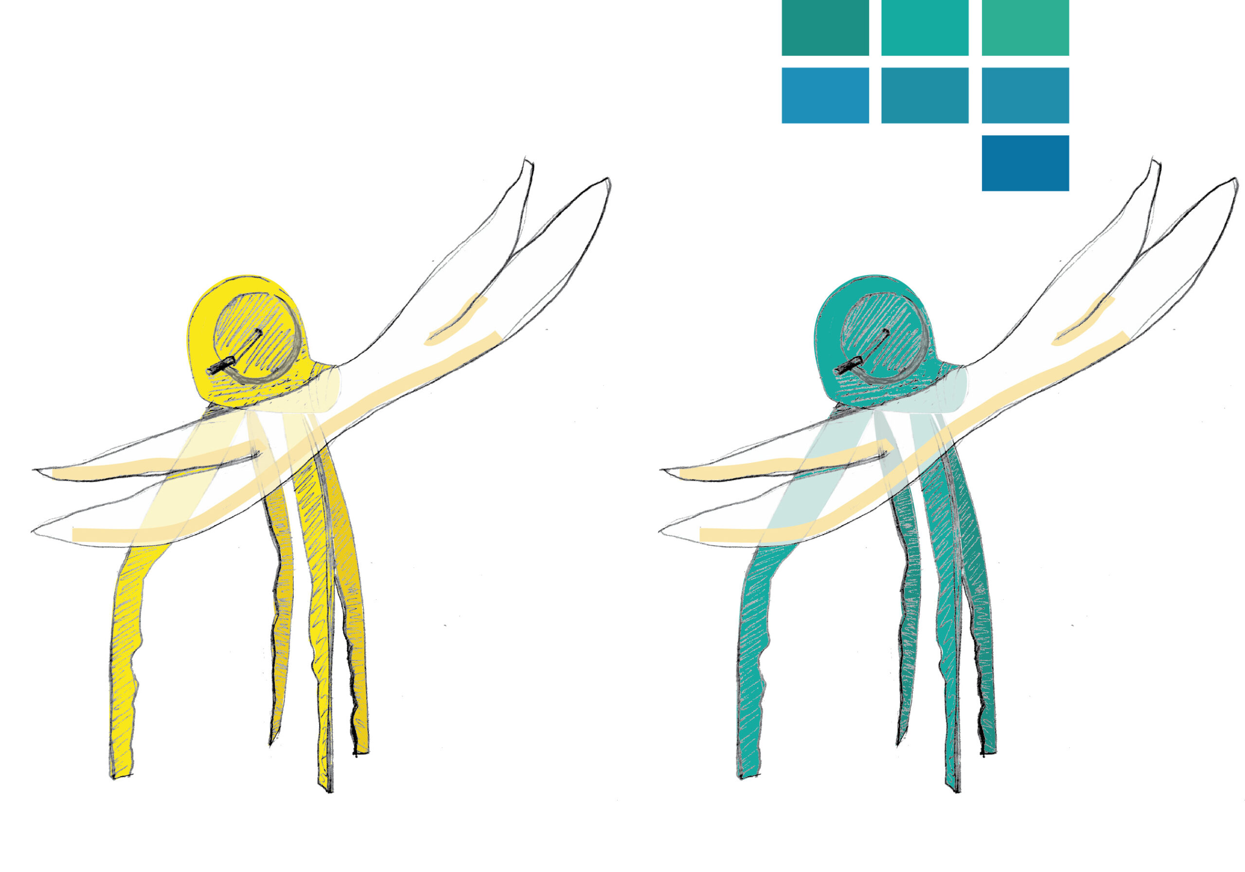 - prendre en compte le milieu aquatique (une première « mue » réfléchissante comme la surface de l’eau ?)