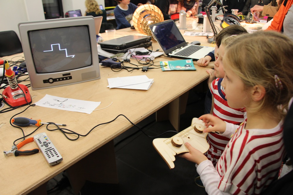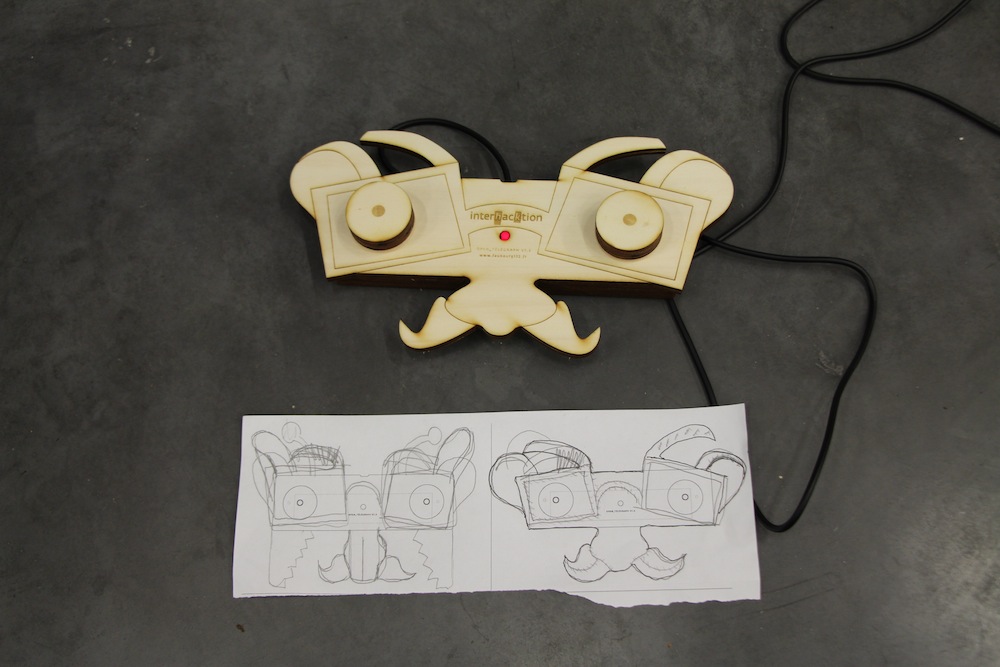 Télégraph est une réinterprétation numérique de la célèbre « ardoise magique ». Le dispositif se connecte à une télévision ou tout dispositif disposant d’une entrée vidéo, il permet de dessiner grâce à la rotation coordonnée de ses deux molettes. Son aspect ludique attire les participants mais sa fabrication est un prétexte pour engager une démarche pédagogique visant à exposer, par la pratique, l’ensemble du processus de fabrication d’un dispositif numérique. Notions de dessin et d’ergonomie, de fabrication numérique (fraisage numérique ou découpe laser), d’électronique, de programmation et d’intégration.