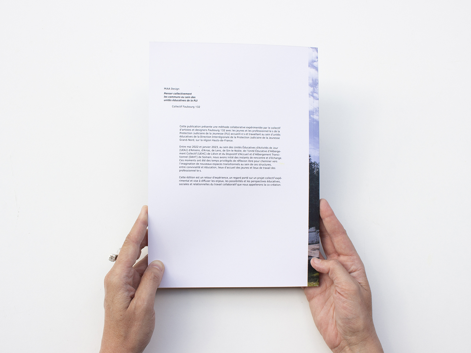 Cette publication présente une méthode collaborative expérimentée par le collectif d’artistes et designers Faubourg 132 avec les jeunes et les professionnel·le·s de la Protection Judiciaire de la Jeunesse (PJJ) accueillis et travaillant au sein d’unités éducatives de la Direction Interrégionale de la Protection Judiciaire de la Jeunesse Grand-Nord, sur la région Hauts-de-France.