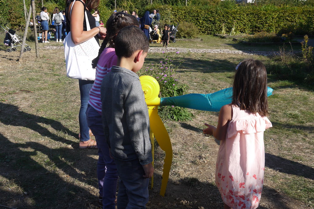 En collaboration avec les équipes du Jardin de Chlorophylle et les encadrants et familles, nous avons imaginé un ensemble de dispositifs pédagogiques à destination du jeune public. Nous avons plus particulièrement choisi de parler de l’environnement humide, sa faune et sa flore, en créant une installation interactive autour de la mare du jardin.