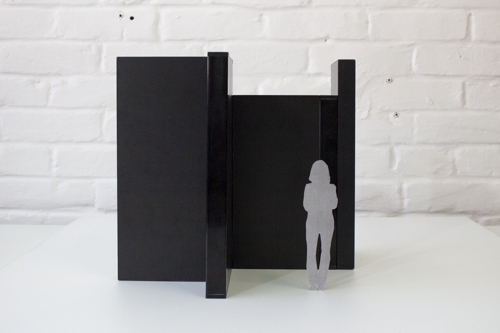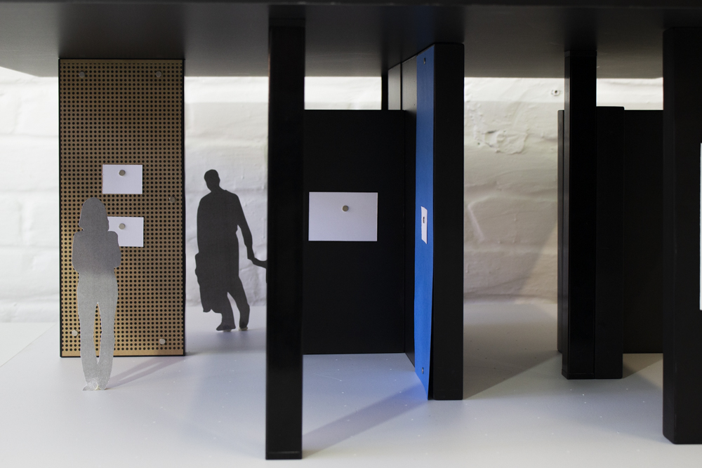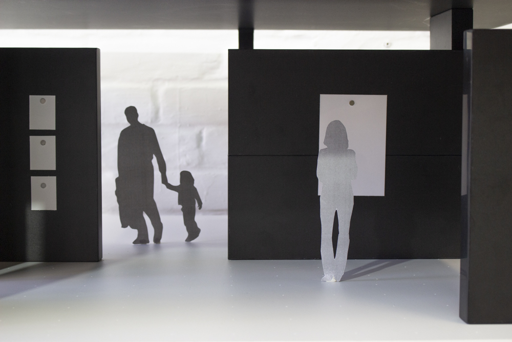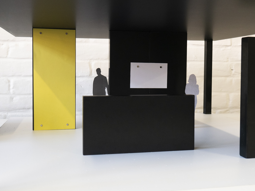 Fabriquée à partir de matériaux de récupération issus du démontage d’exposition de l’Institut pour la Photographie, nous avons imaginé et fabriqué un outil destiné à initier le public à la conception d’une exposition. Il permet également aux équipes de la structure de réfléchir et concevoir de futures scénographies avec les artistes exposés.