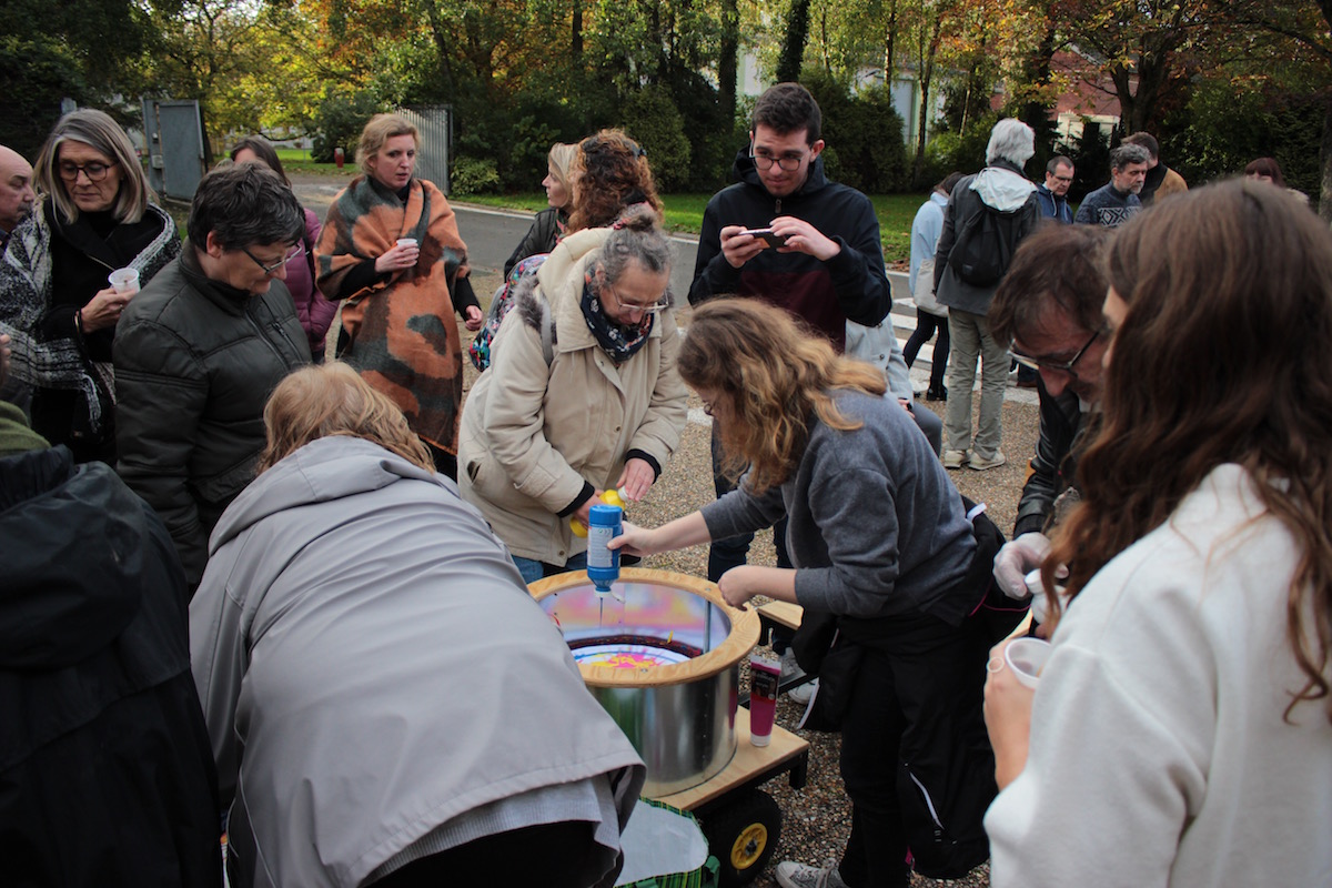 Nous imaginons ainsi un ensemble de dispositifs mobiles s’accrochant derrière ces véhicules à pédales. Nous avons réalisé 6 dispositifs mobiles permettant de créer des situations de rencontres : cuisine, botanique, sonorisation, kiosque, machine à peindre et transport de petit mobilier. L’ensemble peut à présent parader lors des différentes événements de l’EPSM.