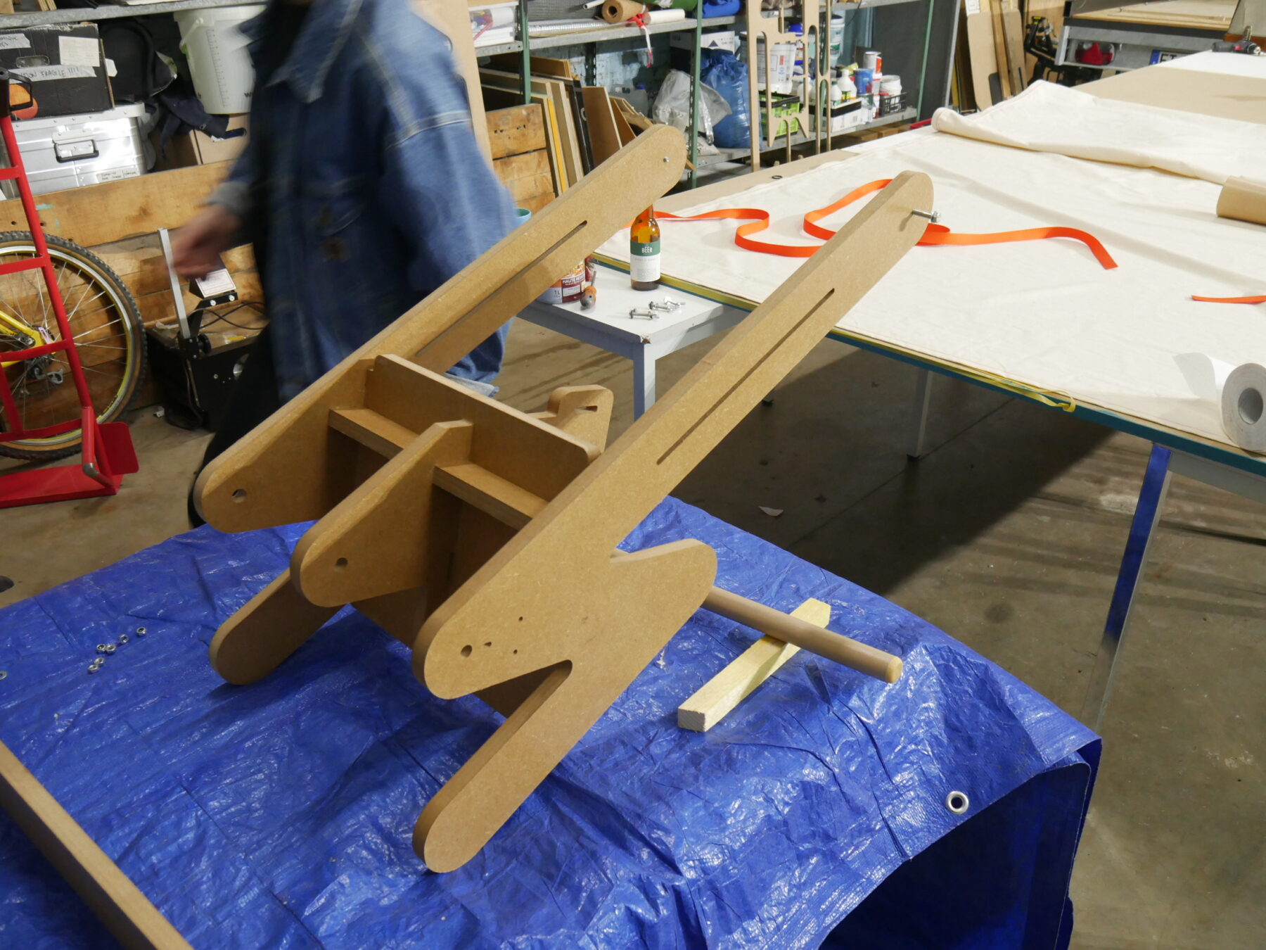 Nous avons réalisé un second prototype constituant ainsi un nouvel outil d’expérimentations dans le cadre de notre recherche-action autour des formes de cohabiter, d’occuper l’espace public, de se déplacer et de communiquer. Nous l’activons notamment dans le cadre d’actions collectives que nous initions en collaborations avec des structures associatives, culturelles, pédagogiques, sociales, etc. (comme à Escaudain, suivez ce lien).